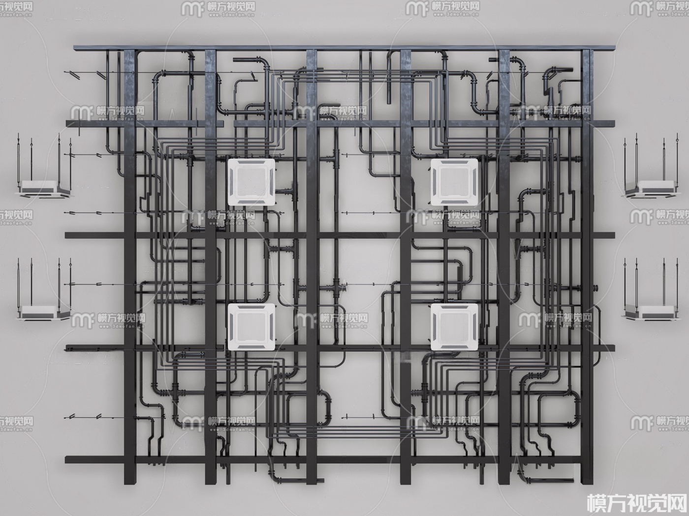 工业风铁艺消防管道3D模型(ID:0032220)