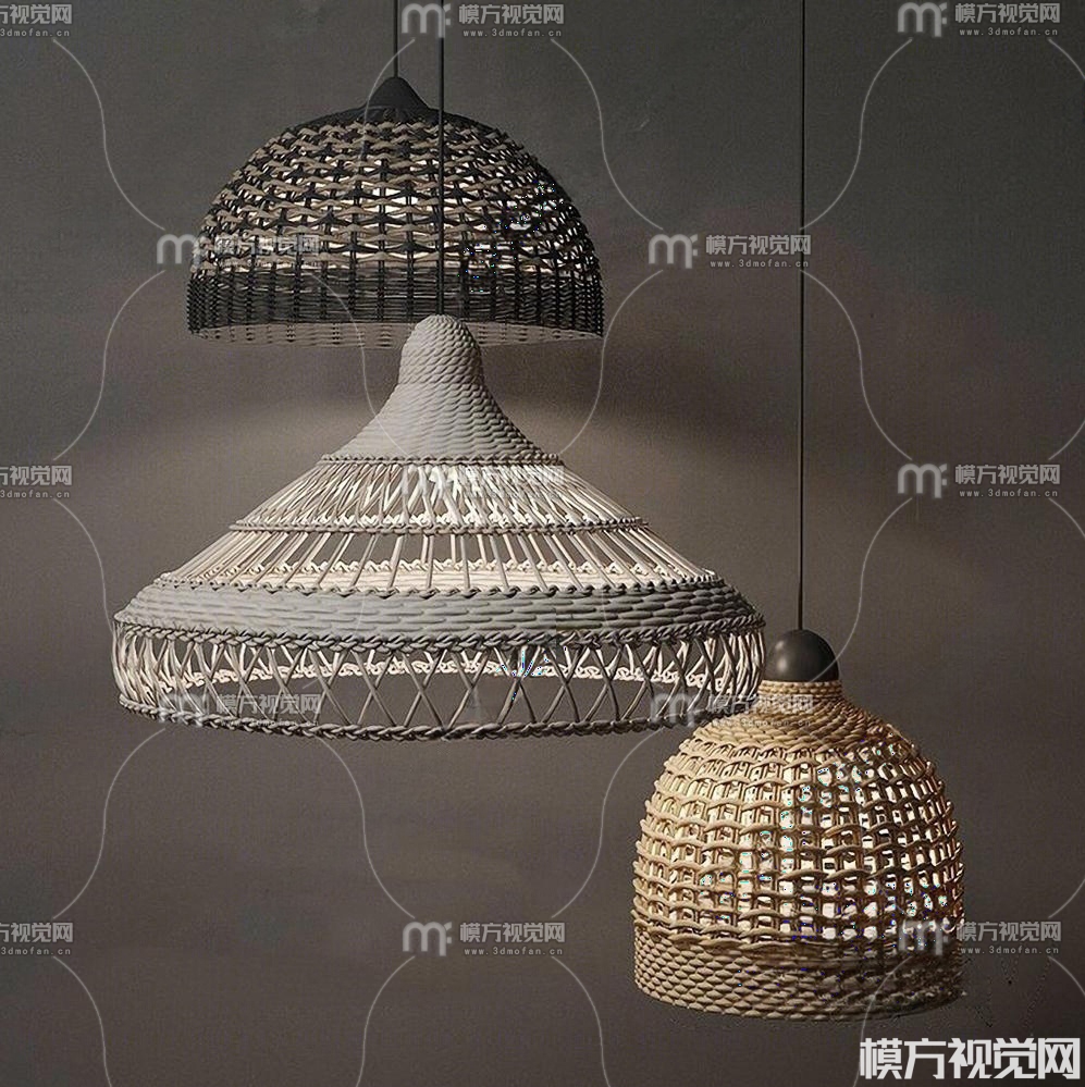 工业风竹编藤编吊灯3D模型(ID:0032230)