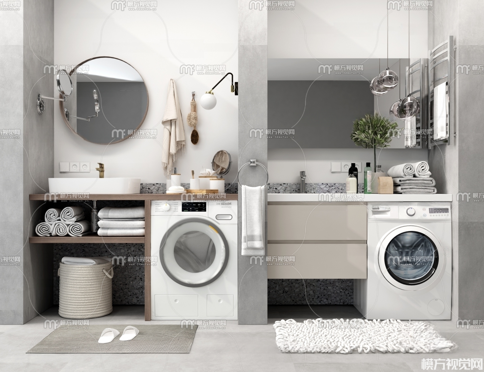 现代浴室柜 洗衣机3D模型(ID:0003242)