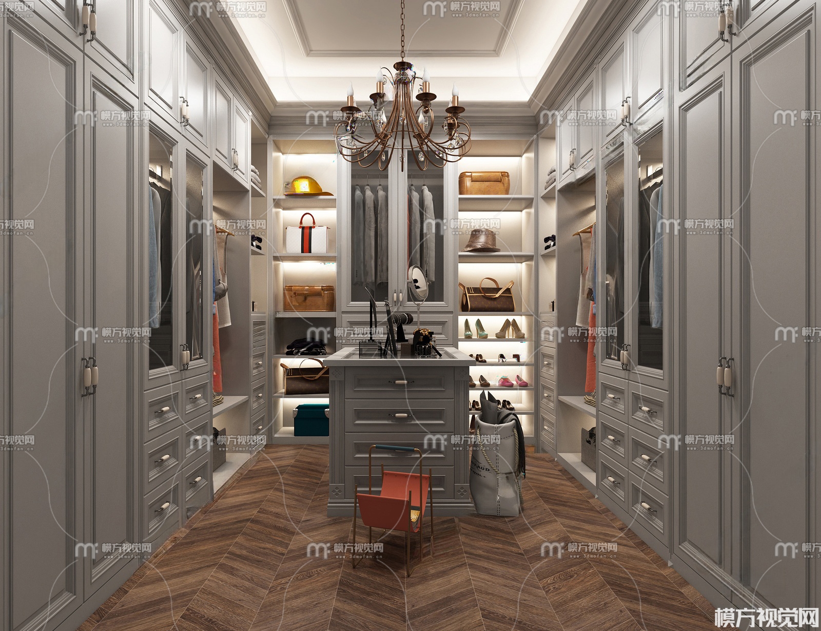 美式风格衣帽间3D模型(ID:0032430)