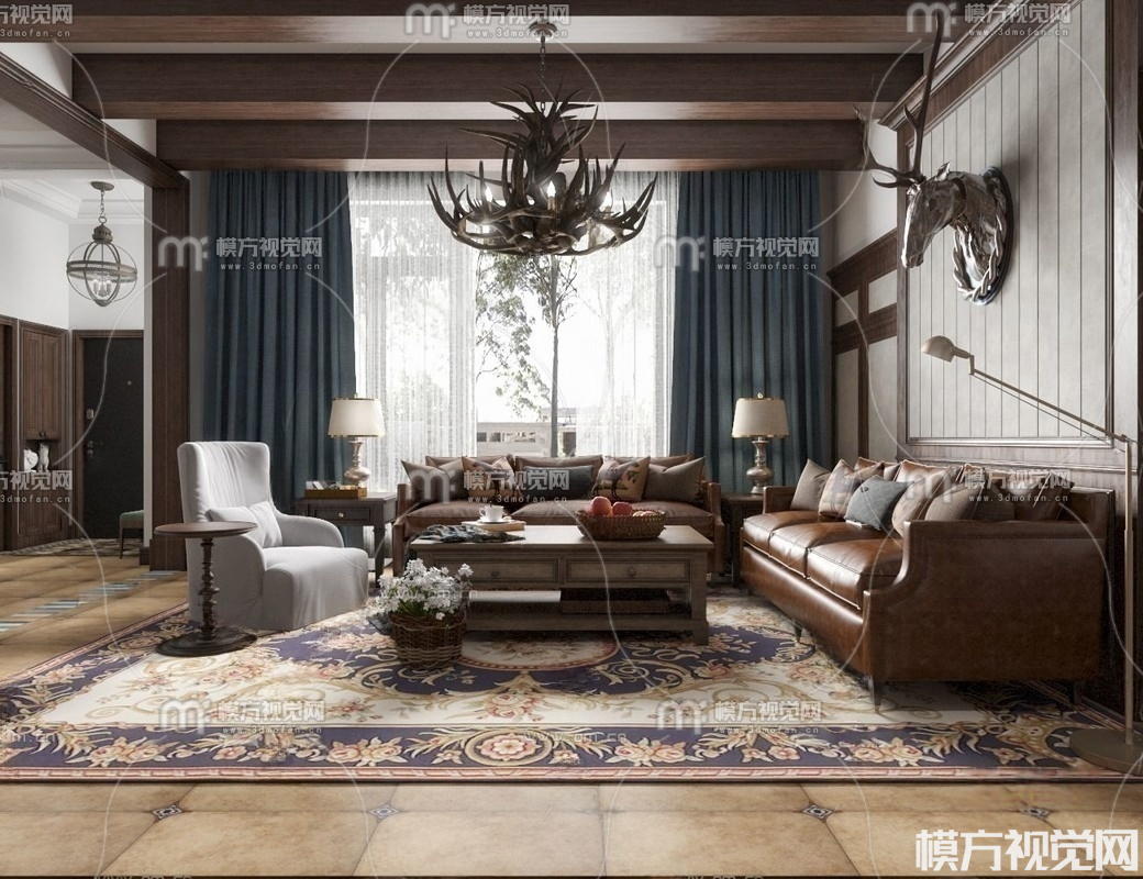 美式客厅3D模型(ID:0032432)