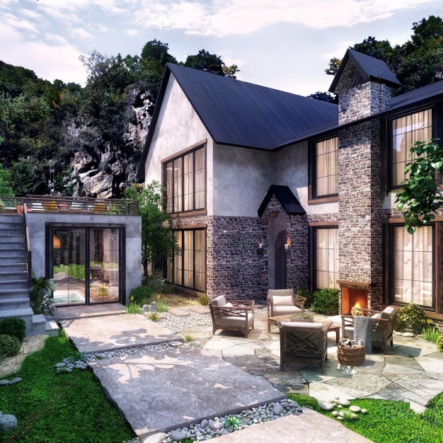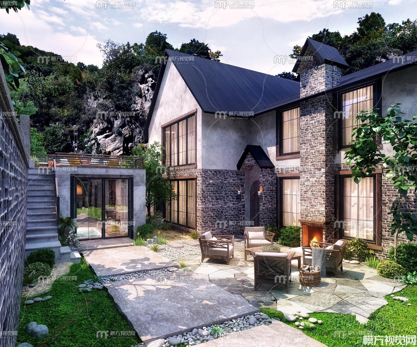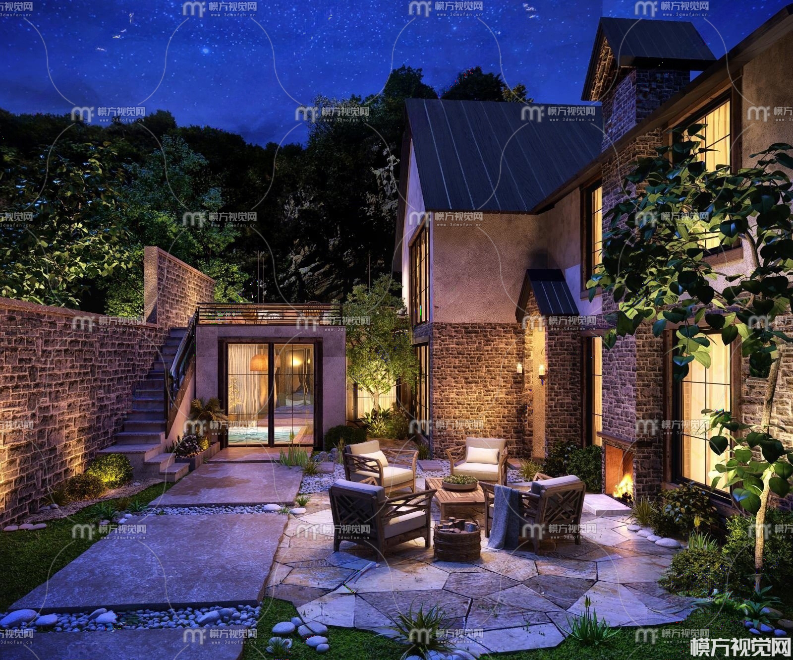 民宿酒店庭院3D模型(ID:0032495)