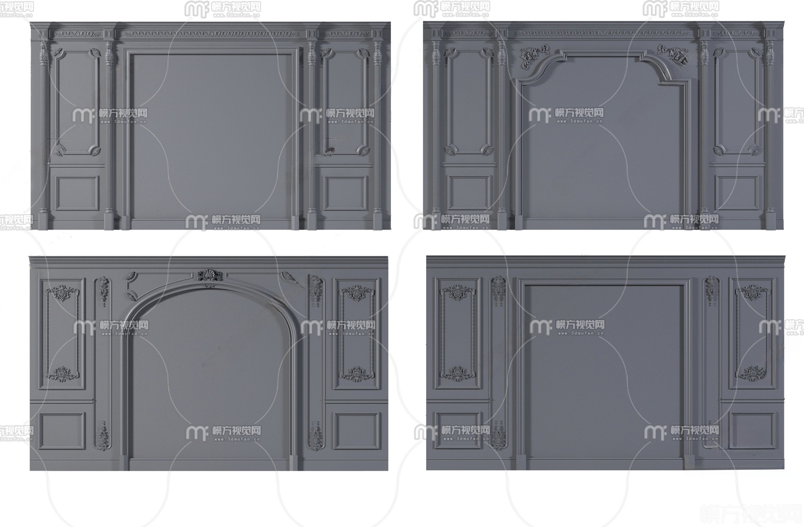 欧式背景墙护墙板3D模型(ID:0032513)