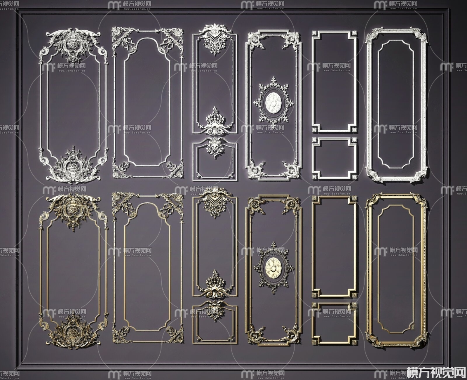 欧式描金雕花护墙板线条3D模型(ID:0032557)