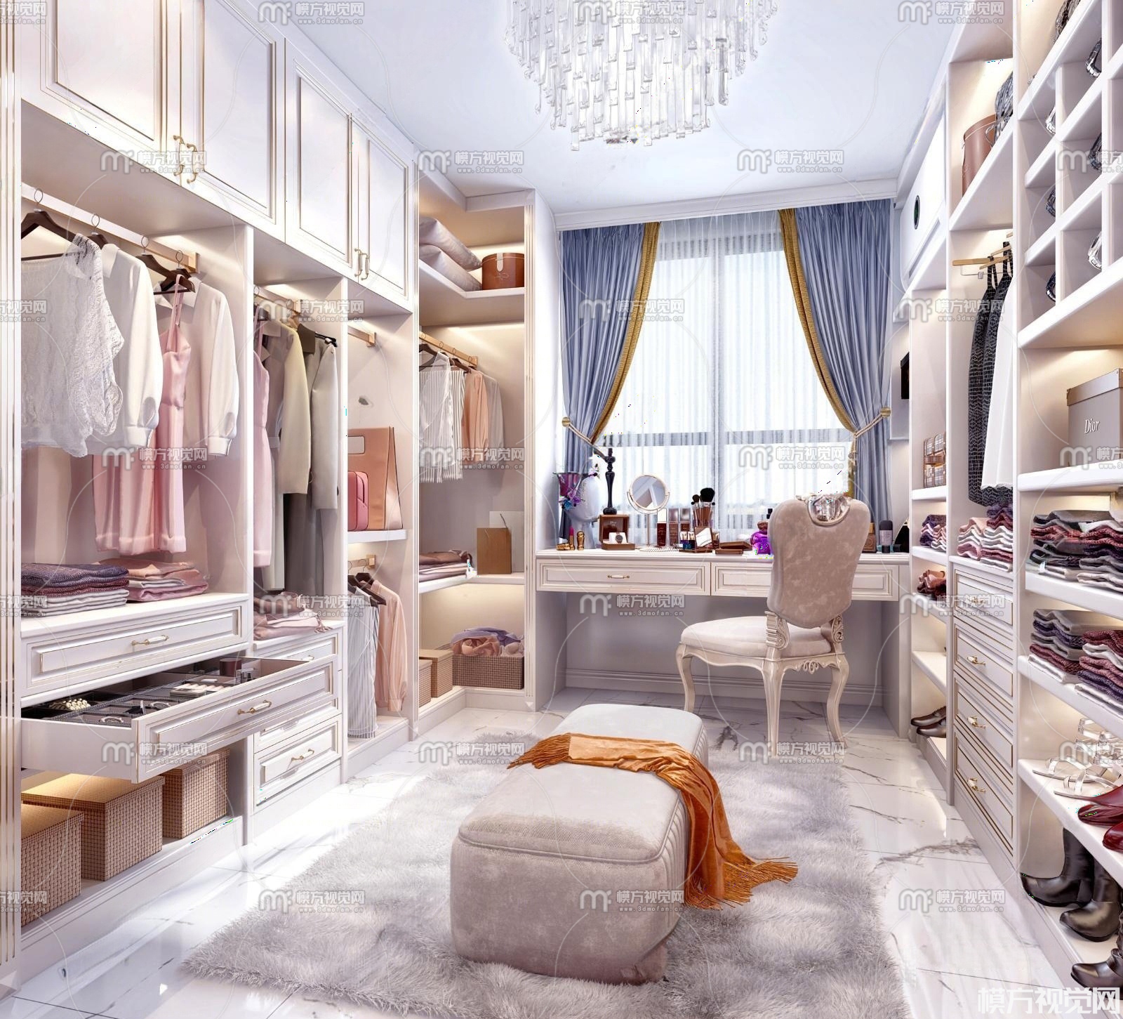 欧式轻奢衣帽间3D模型(ID:0032562)