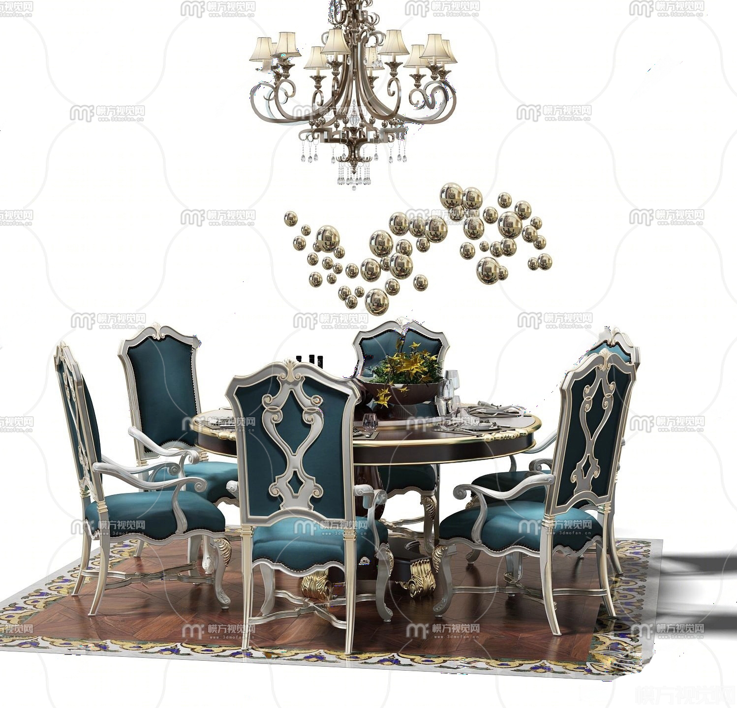 欧式实木圆形餐桌椅3D模型(ID:0032572)
