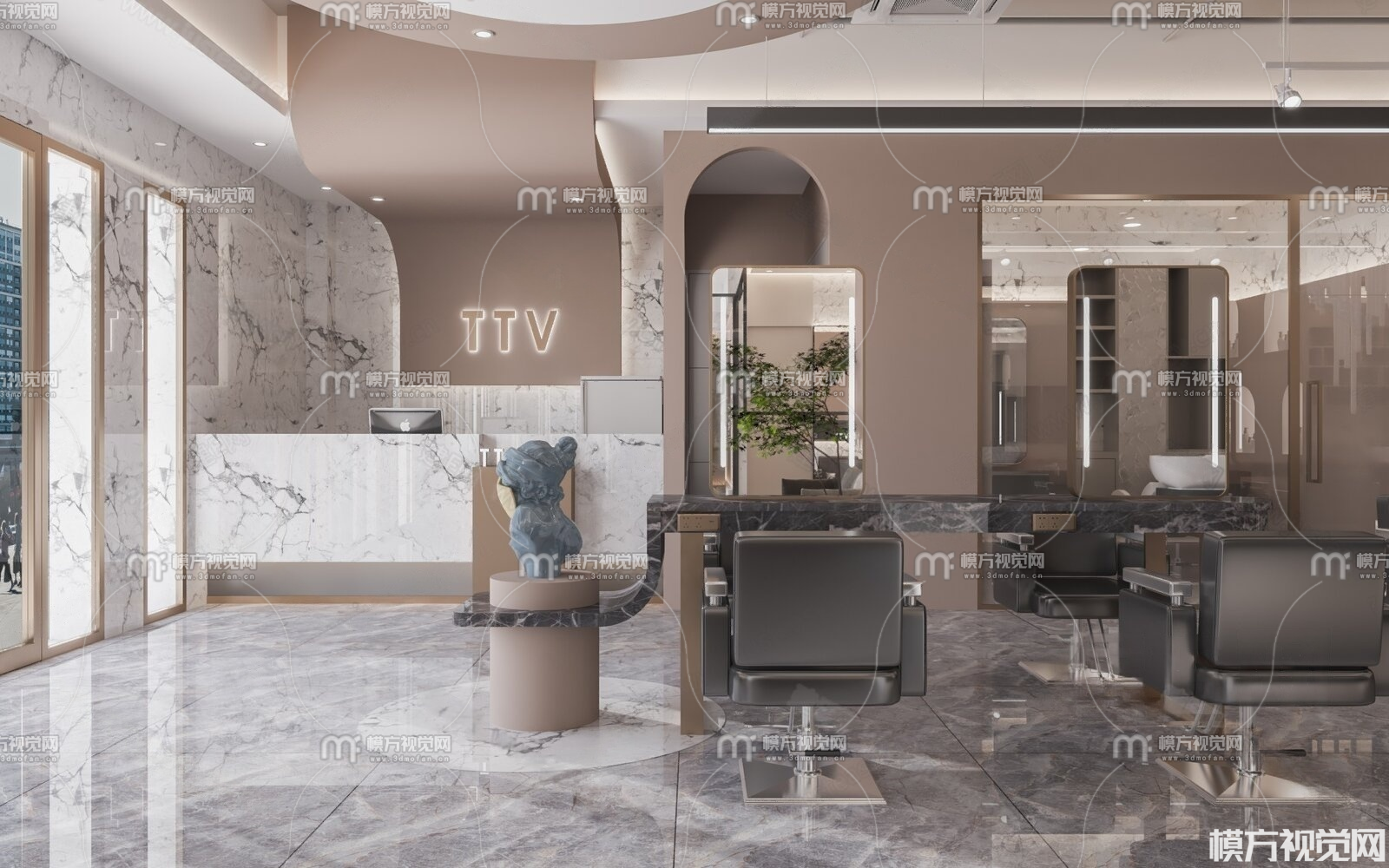轻奢理发店3D模型(ID:0032602)