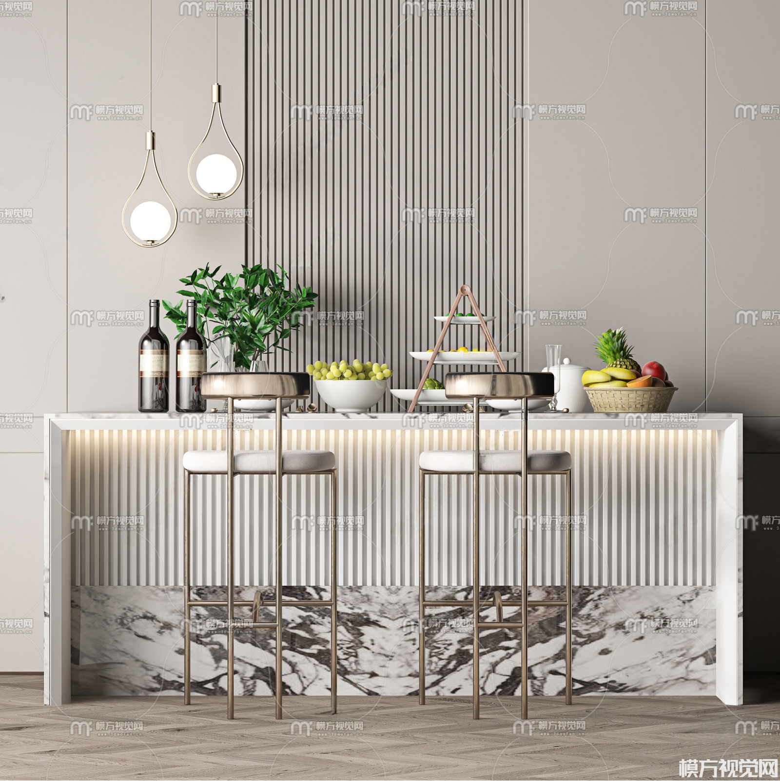 现代吧椅 吧台组合3D模型(ID:0032759)