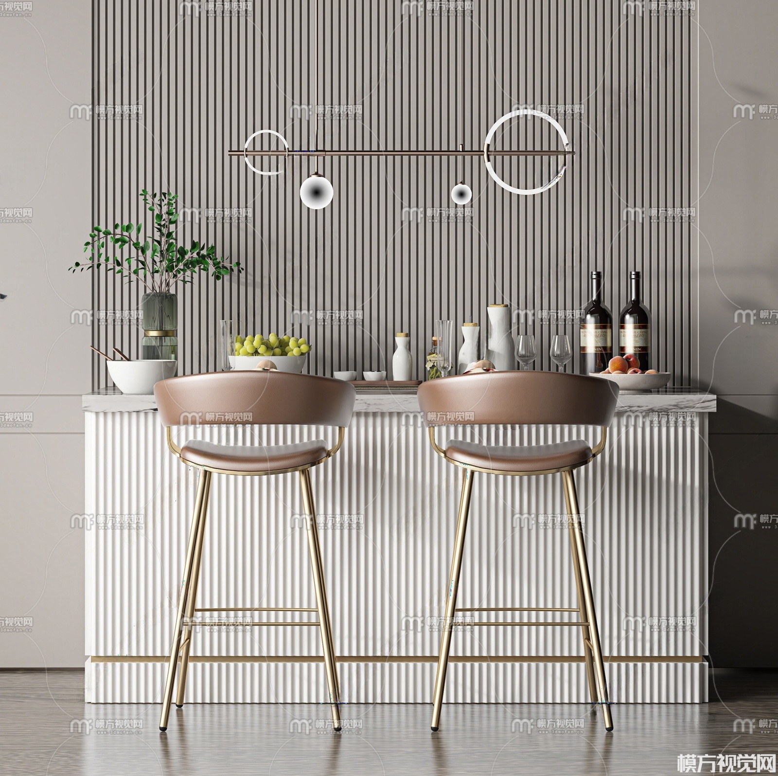 现代吧椅吧台组合3D模型(ID:0032760)