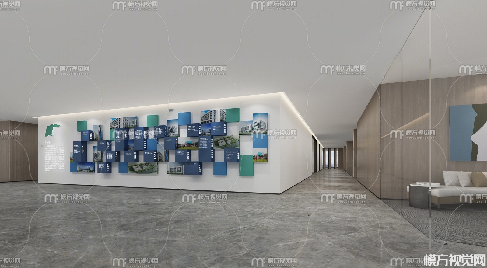 现代办公室过道 文化墙3D模型(ID:0032820)