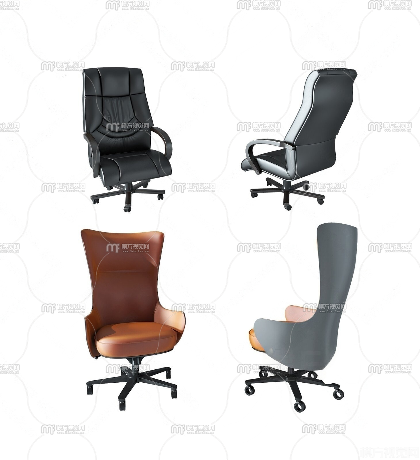 现代办公椅组合3D模型(ID:0032845)