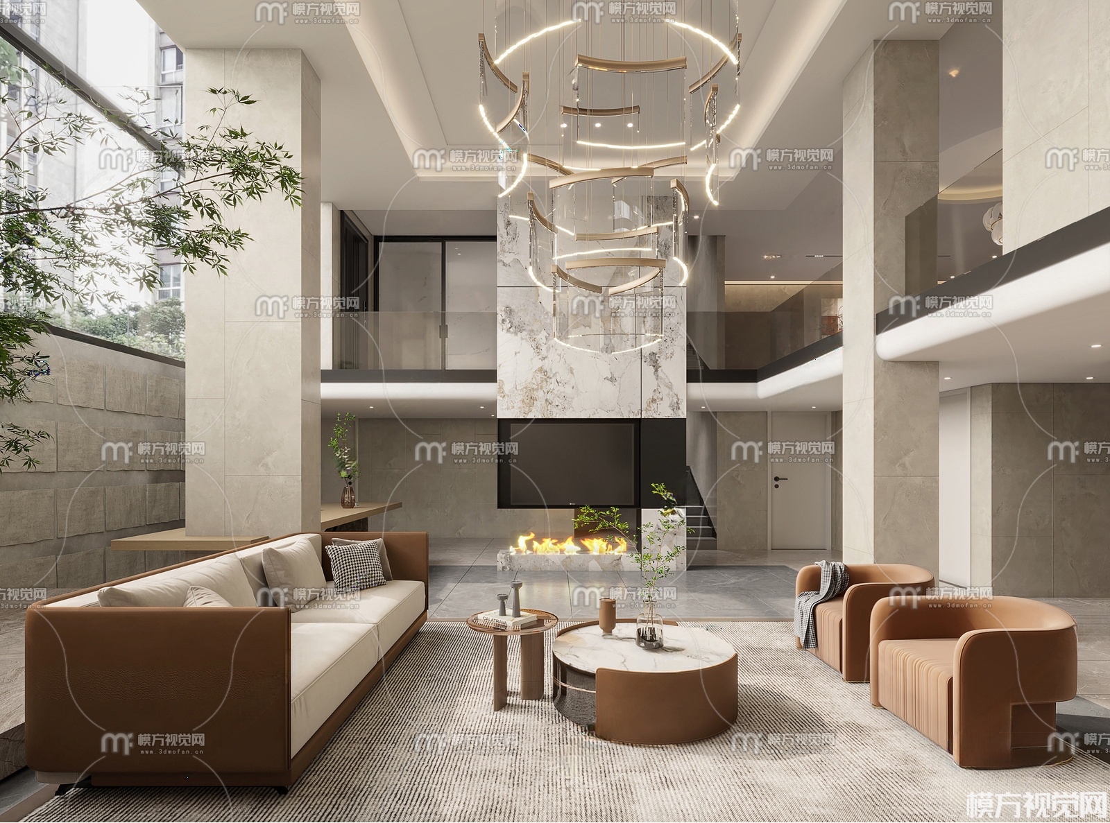 现代别墅客厅3D模型(ID:0033046)