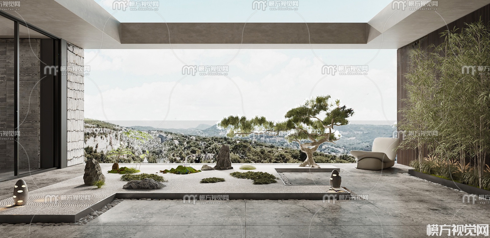 现代别墅阳台景观3D模型(ID:0033061)