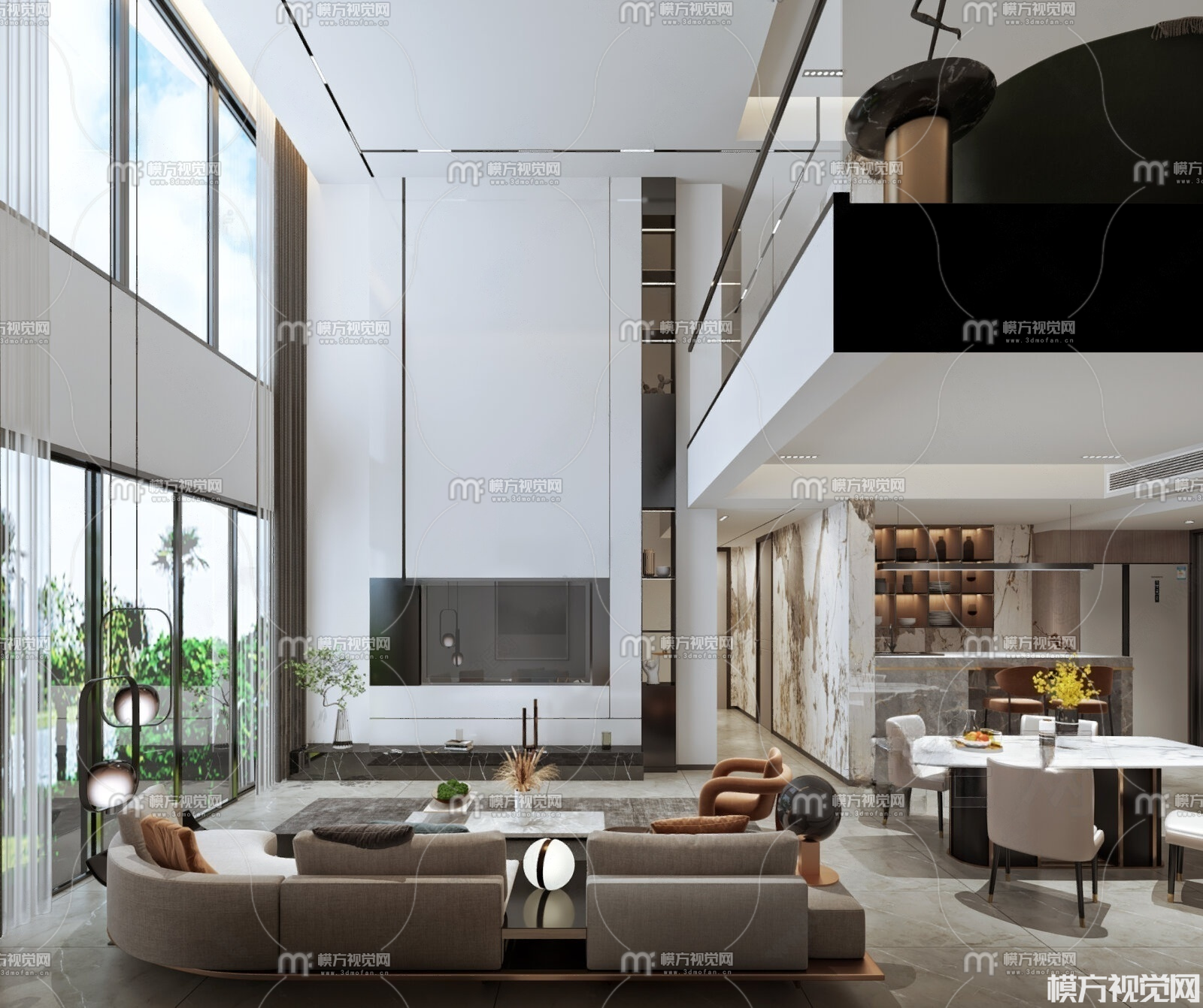 现代别墅中空客厅3D模型(ID:0033063)