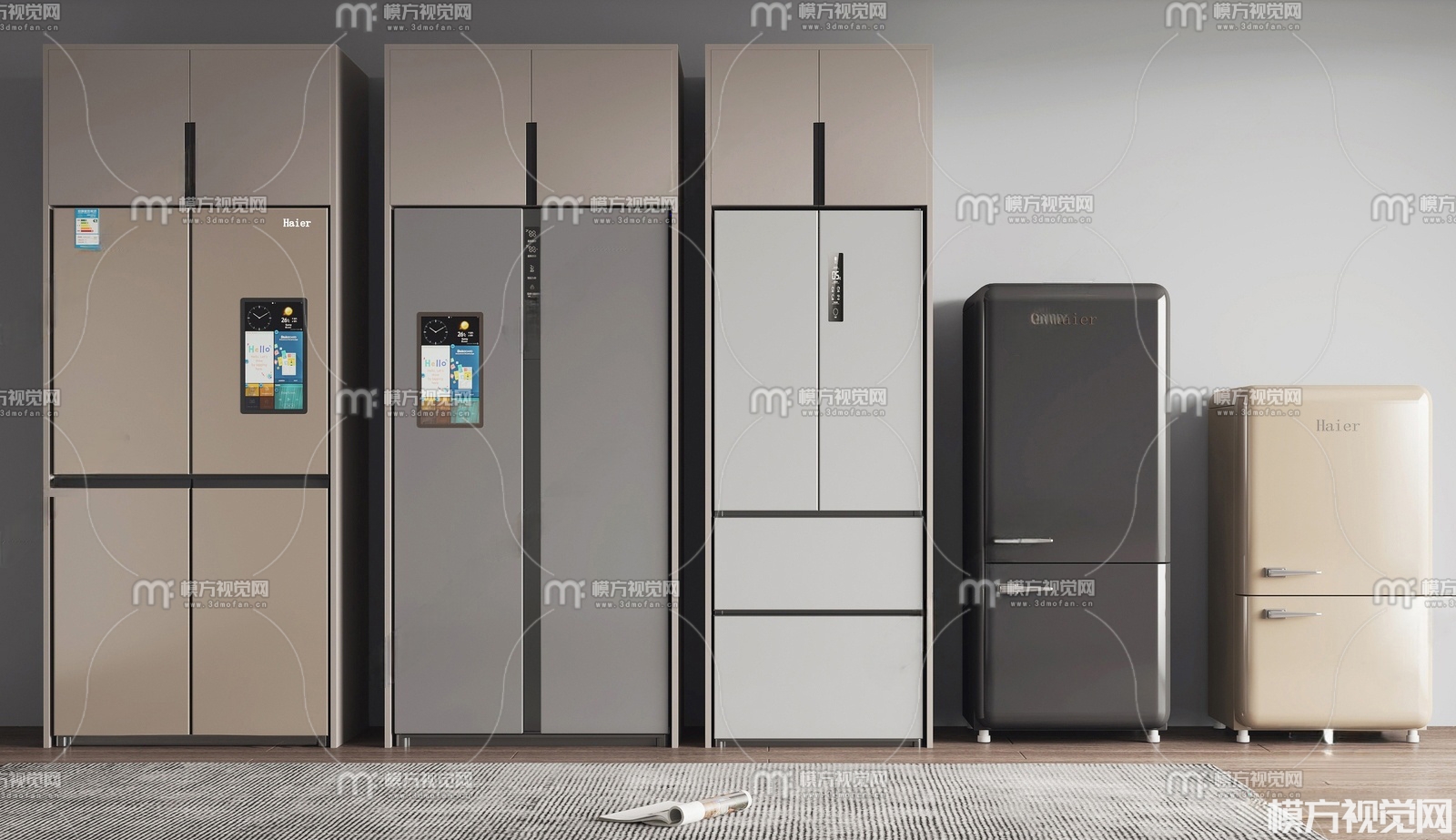 现代冰箱冰柜组合3D模型(ID:0033072)