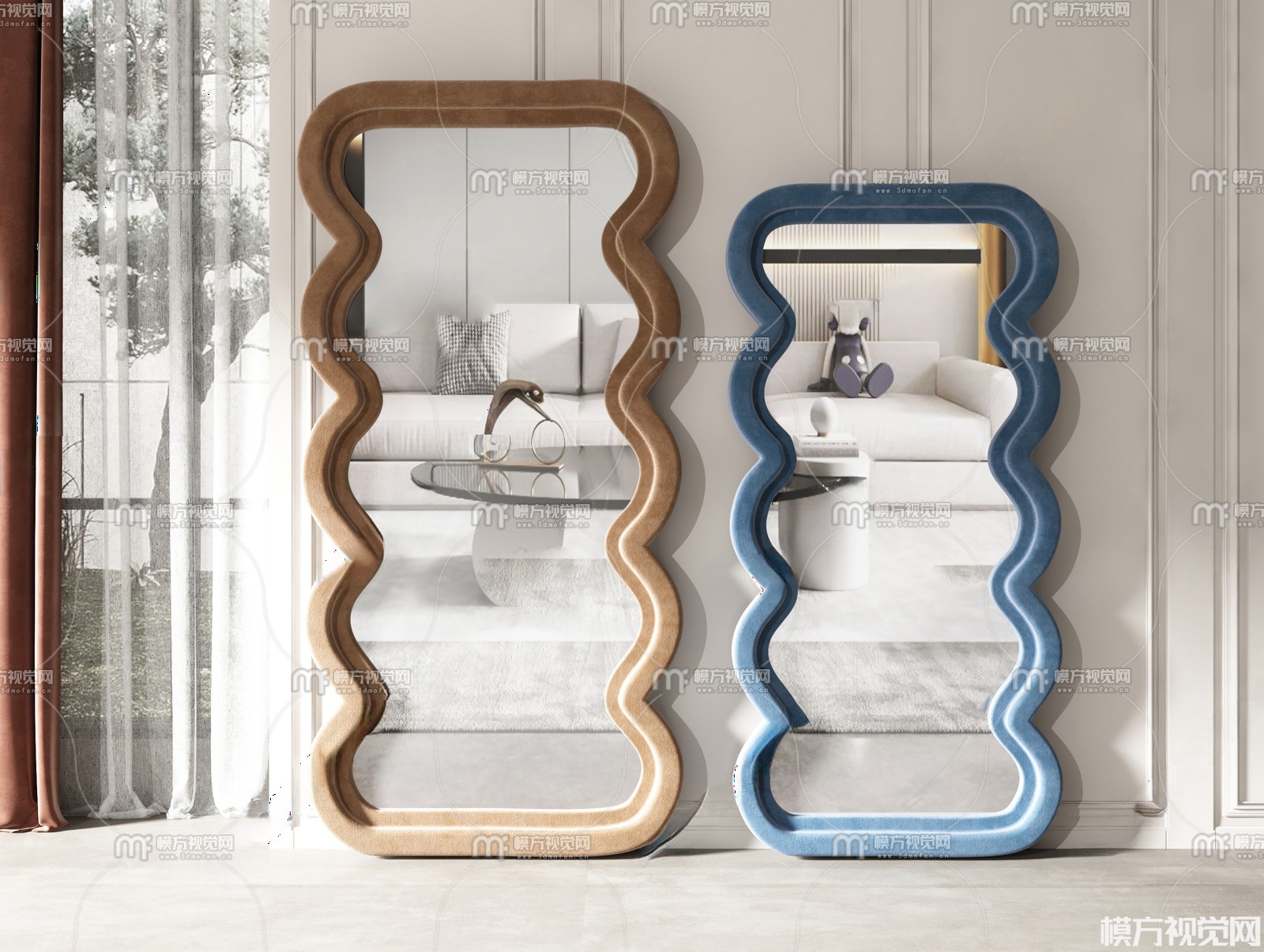 现代波浪全身镜3D模型(ID:0033090)
