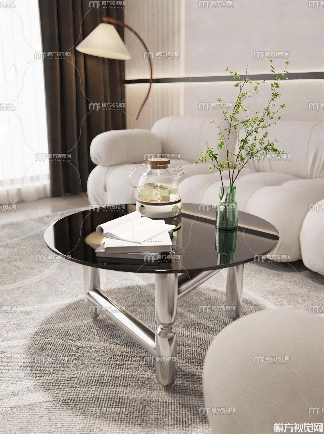 现代玻璃不锈钢茶几3D模型(ID:0033091)