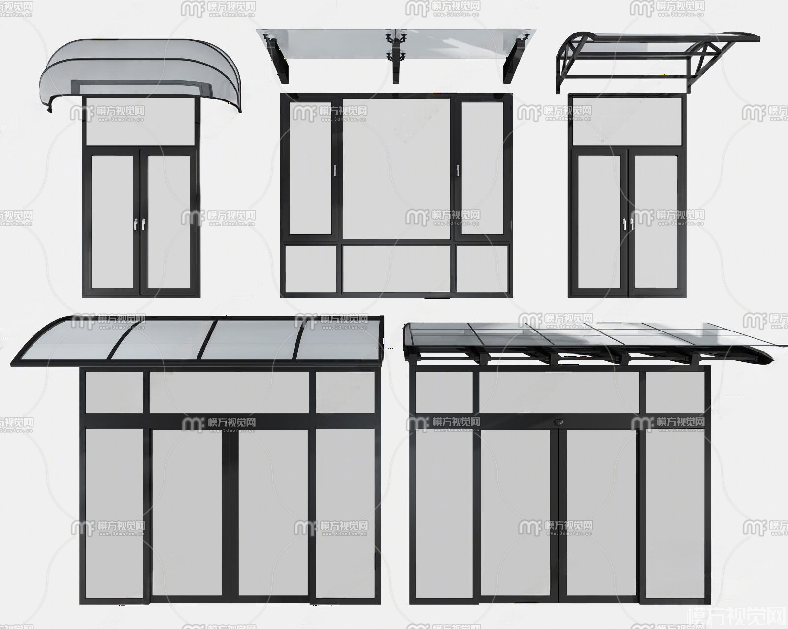 现代玻璃门窗遮阳棚雨棚3D模型(ID:0033126)