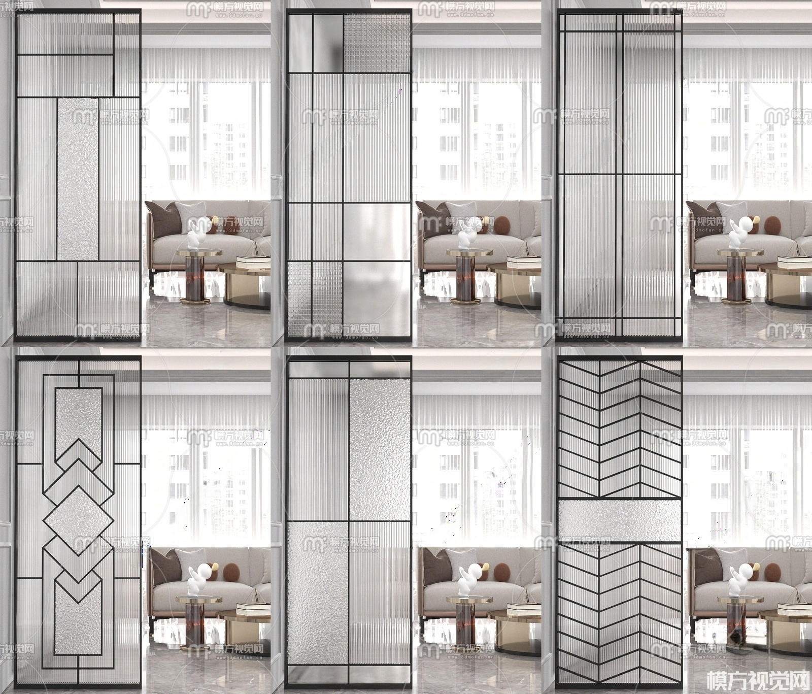 现代玻璃屏风隔断3D模型(ID:0033130)