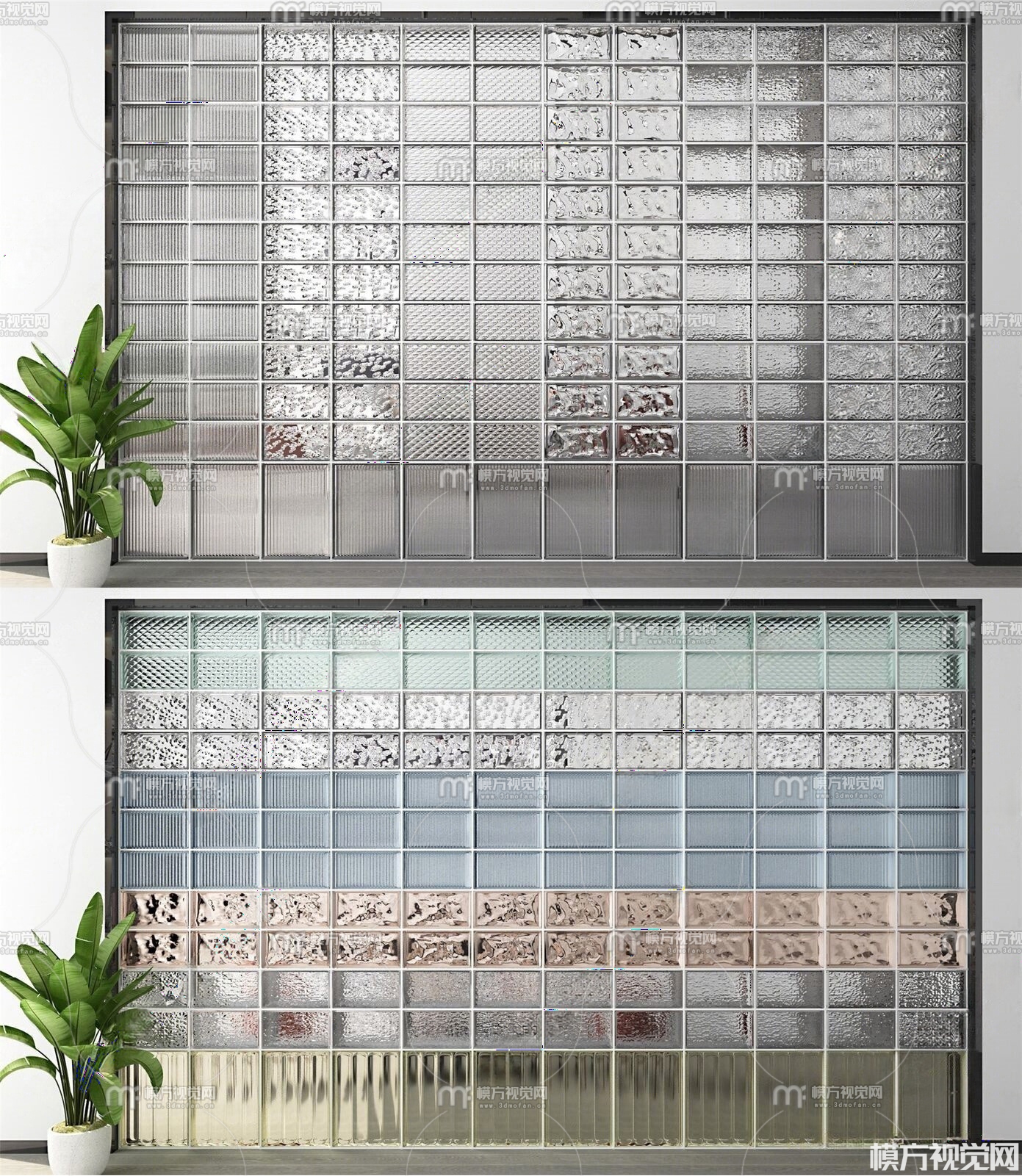 现代玻璃砖隔断组合3D模型(ID:0033156)
