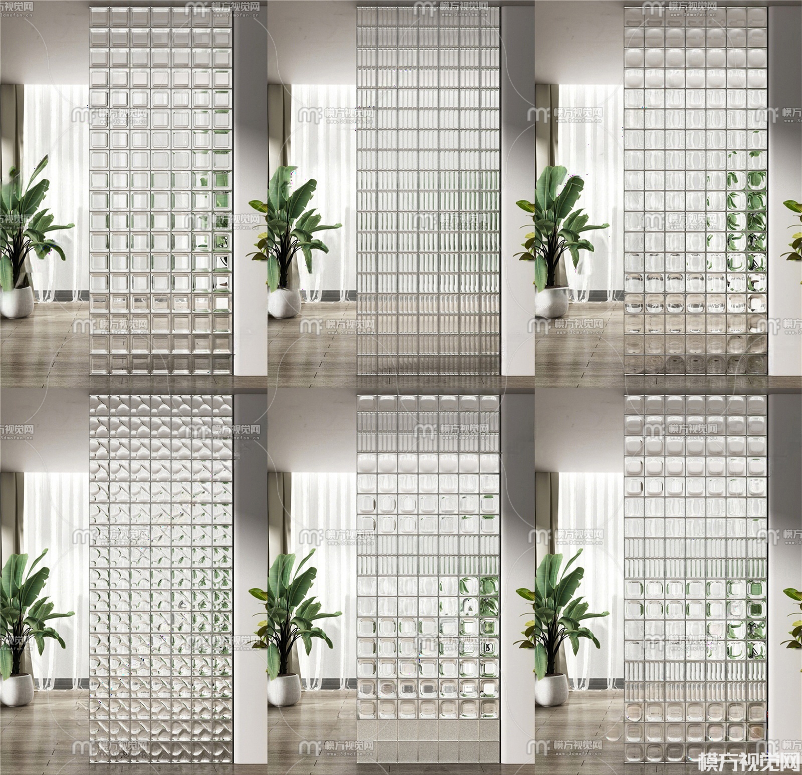现代玻璃砖屏风隔断组合3D模型(ID:0033157)