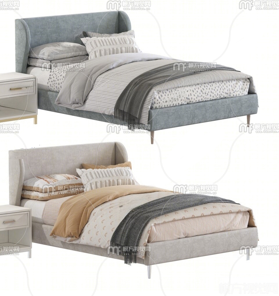现代布艺单人床3D模型(ID:0033181)