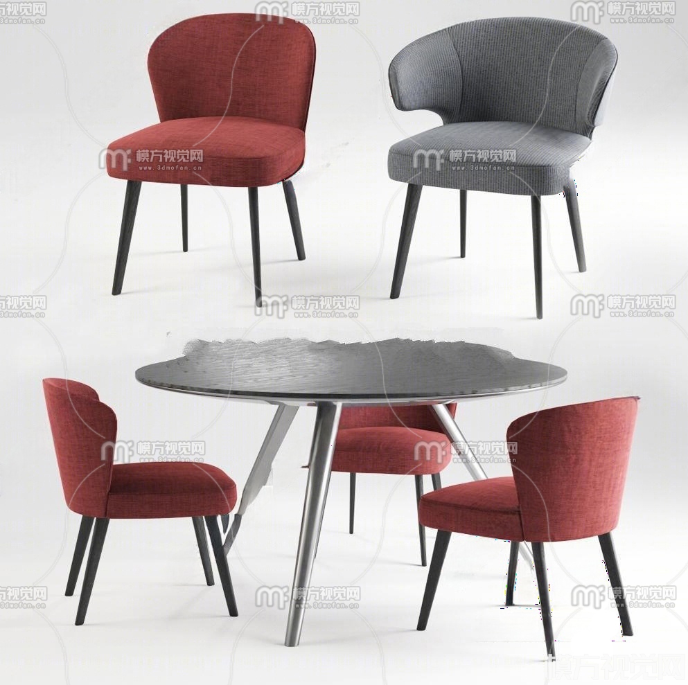 现代布艺单椅圆桌组合3D模型(ID:0033195)