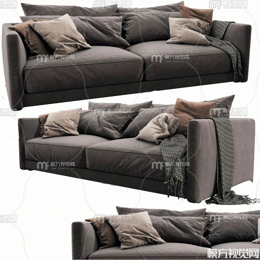 现代布艺多人沙发3D模型(ID:0033205)