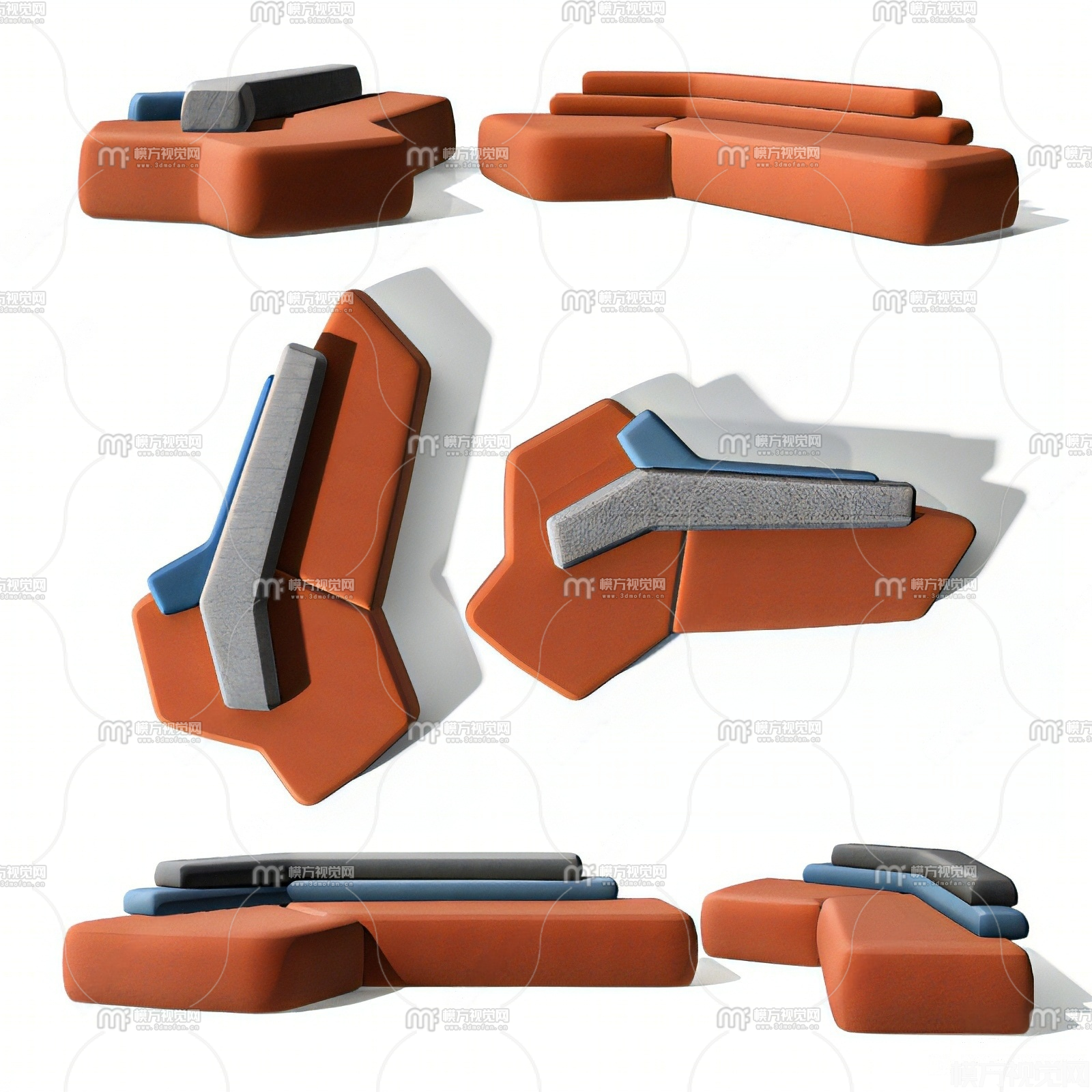 现代布艺办公沙发3D模型(ID:0033211)