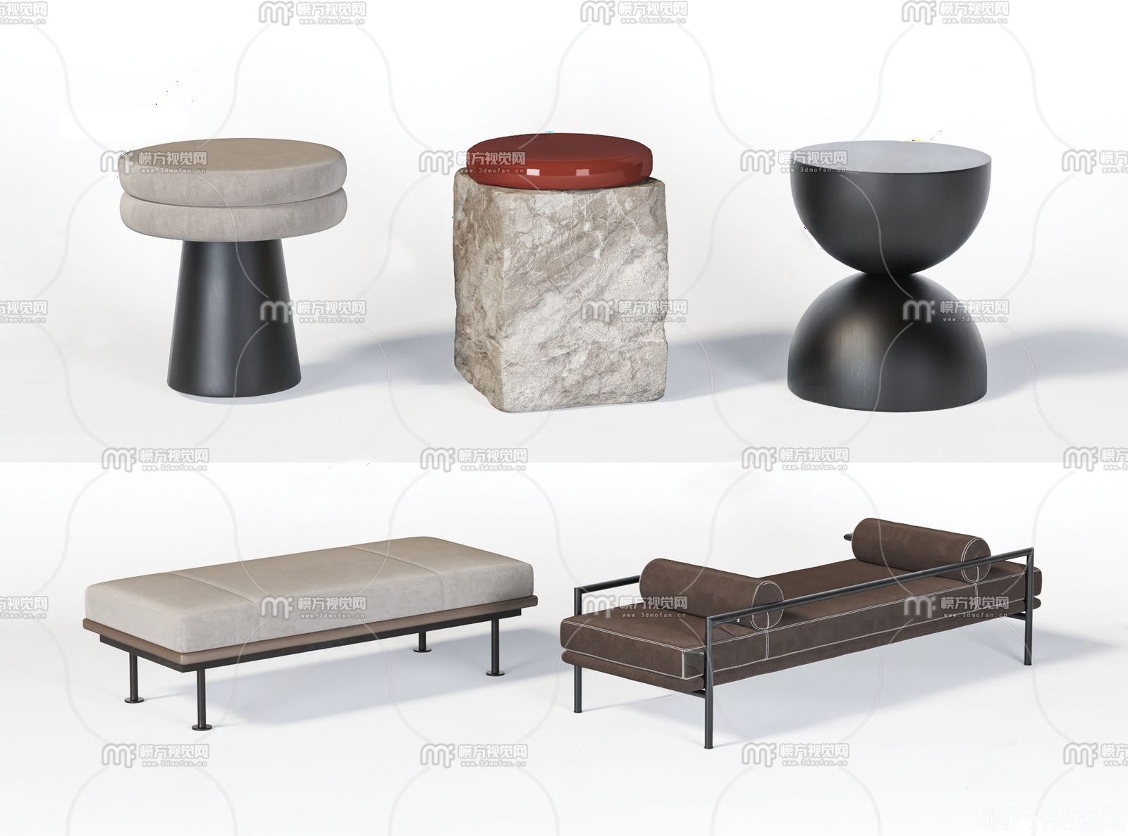 现代布艺脚踏矮凳3D模型(ID:0033218)