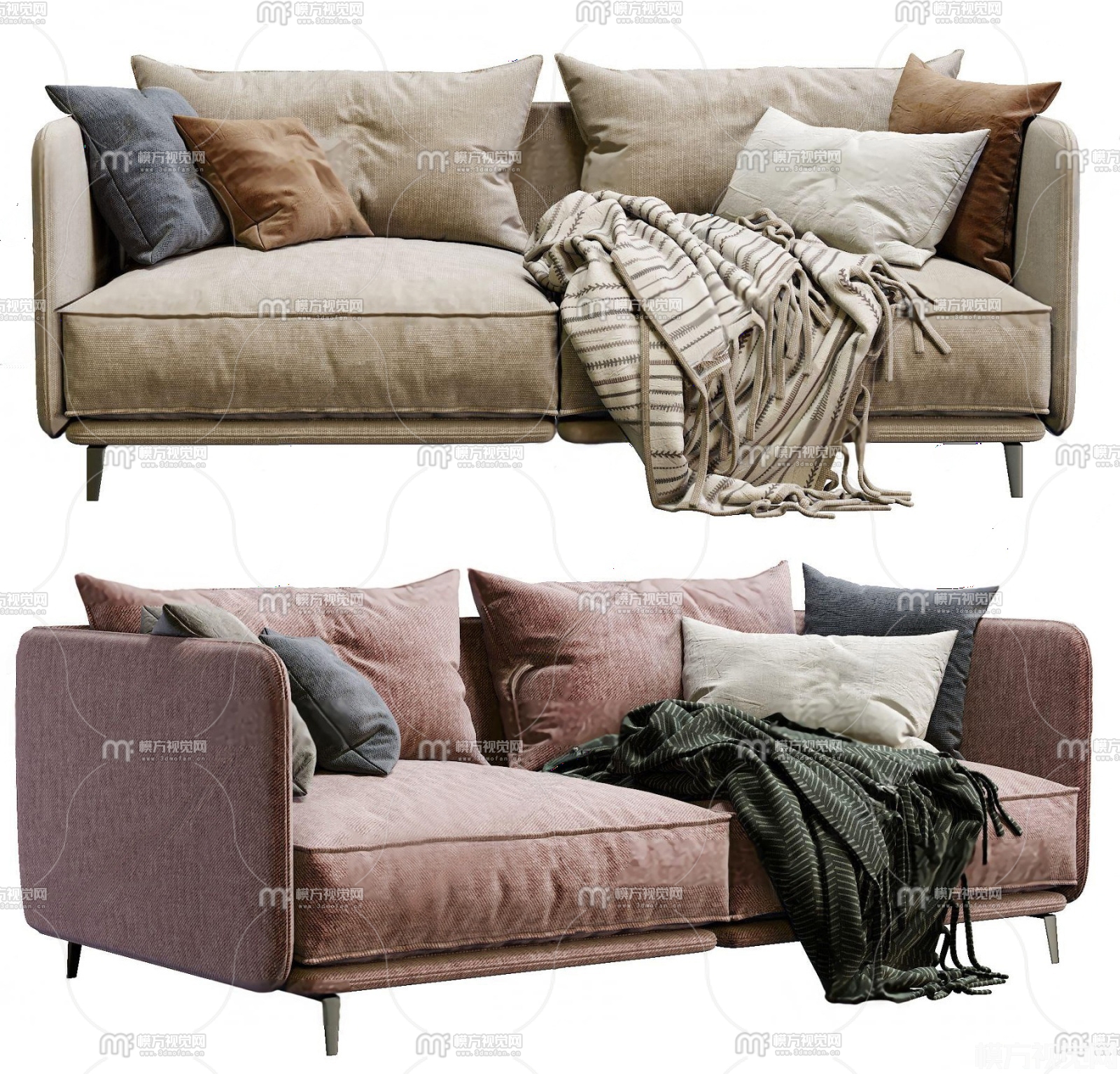 现代布艺双人沙发3D模型(ID:0033253)
