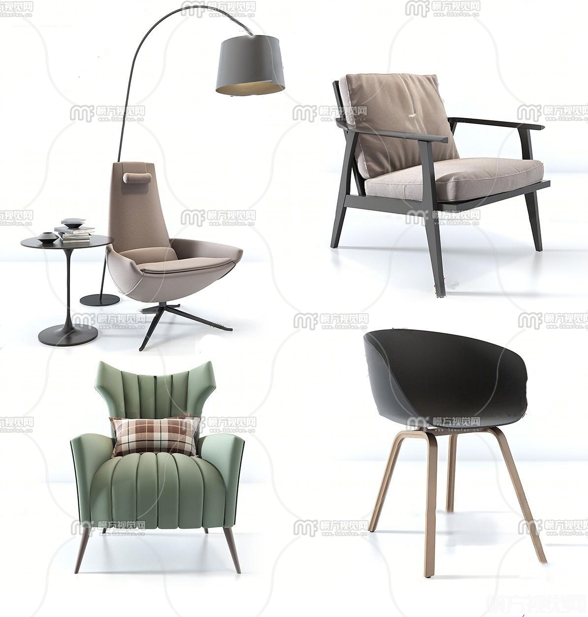 现代布艺休闲椅组合3D模型(ID:0033277)