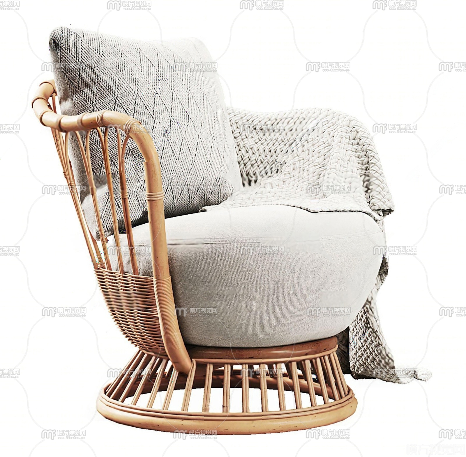 现代布艺竹编休闲椅3D模型(ID:0033282)