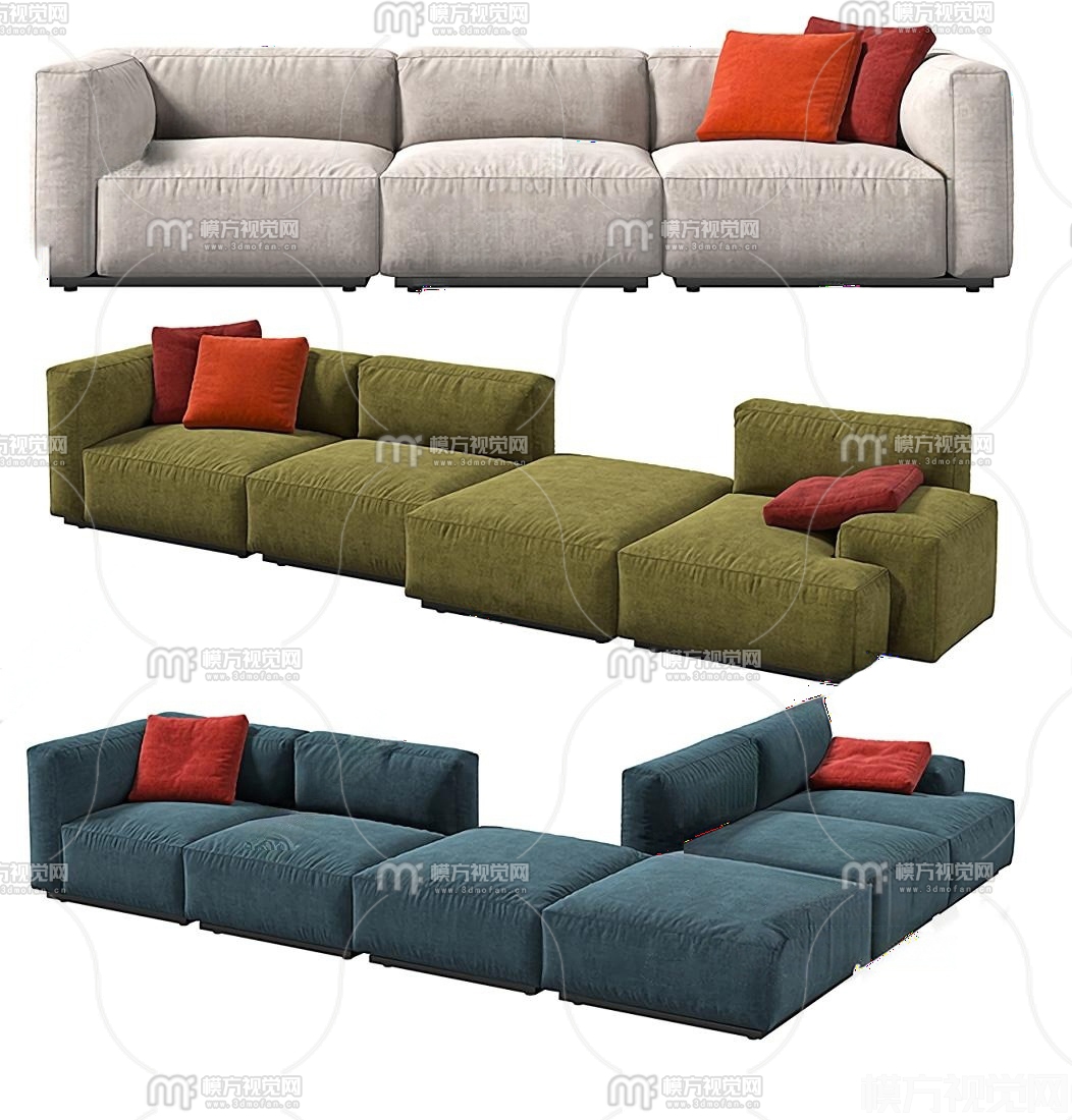 现代布艺组合沙发3D模型(ID:0033293)