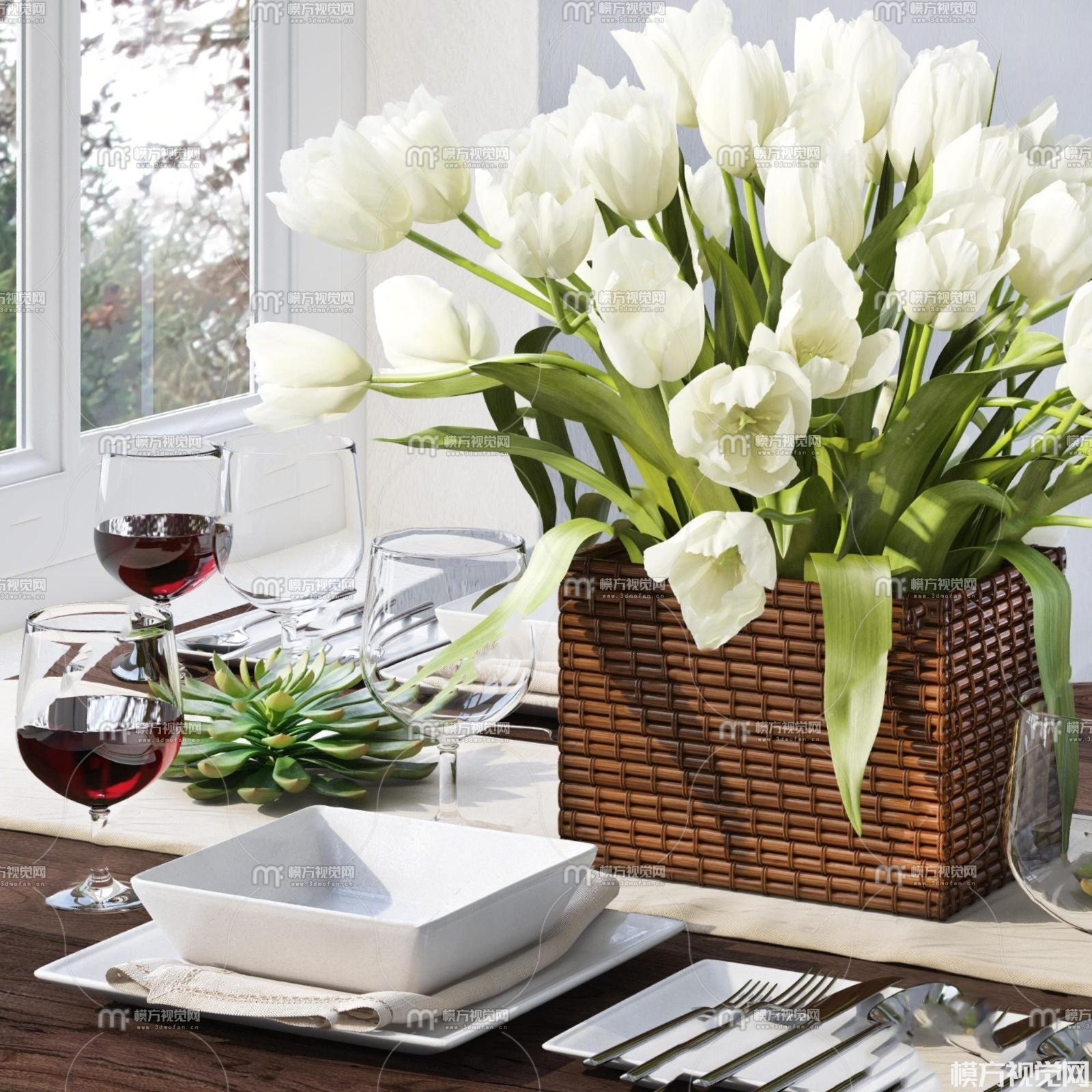 现代餐具摆件组合3D模型(ID:0033312)