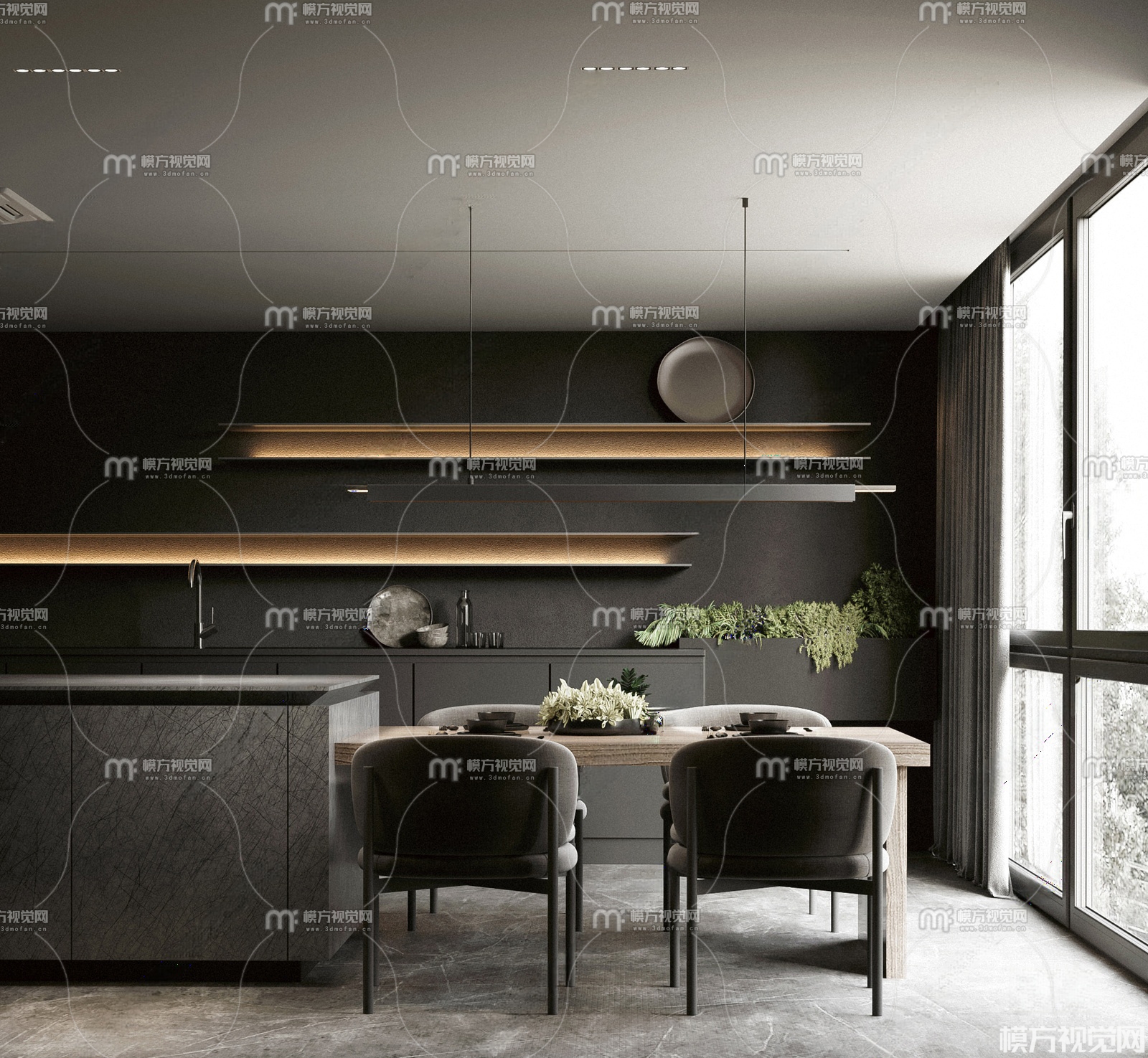 现代餐厅3D模型(ID:0033332)