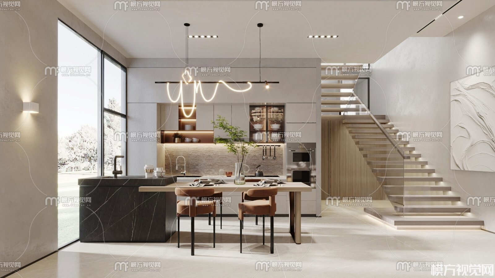 现代餐厅3D模型(ID:0033377)