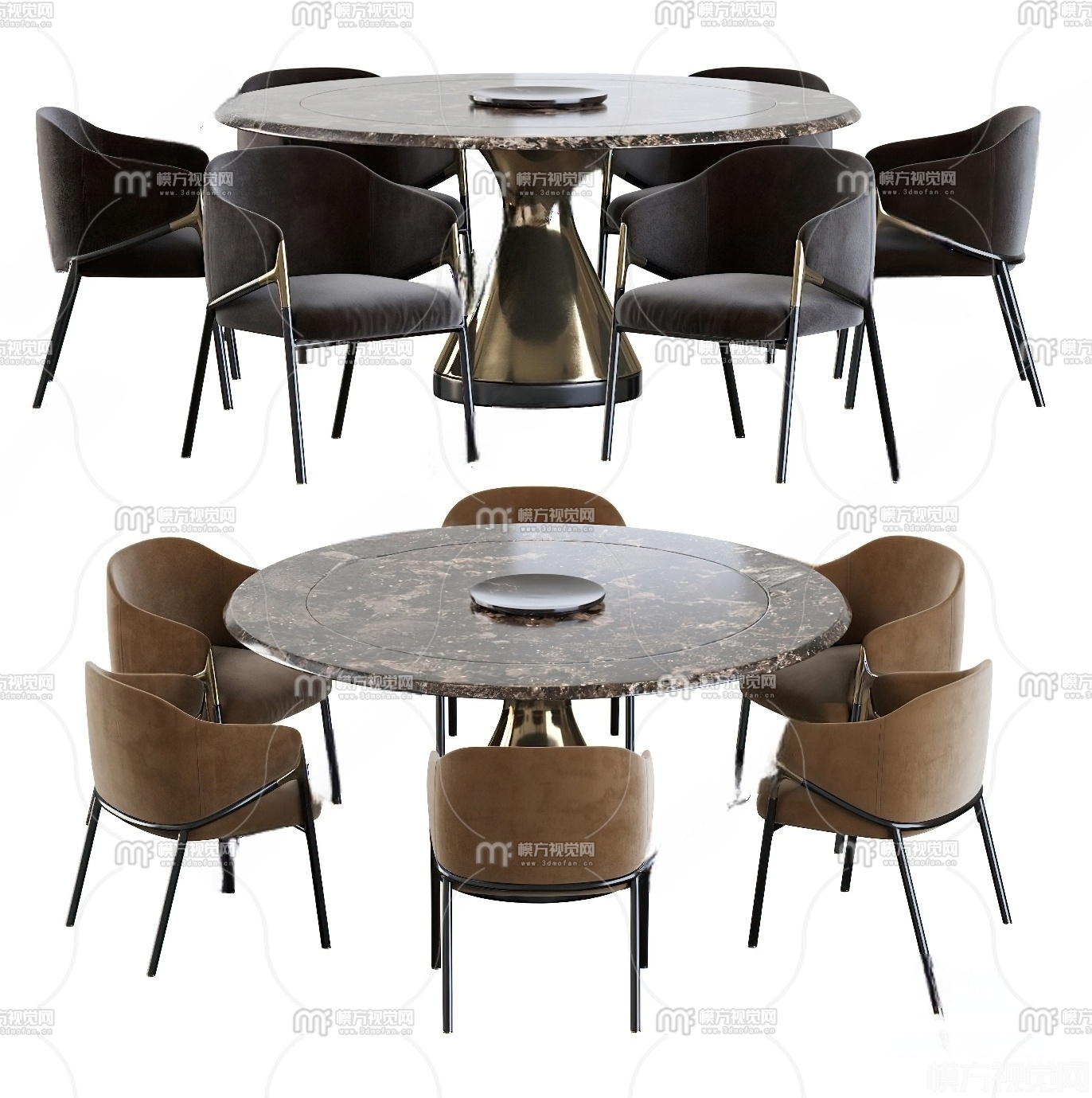 现代圆形餐桌椅组合3D模型(ID:0033459)