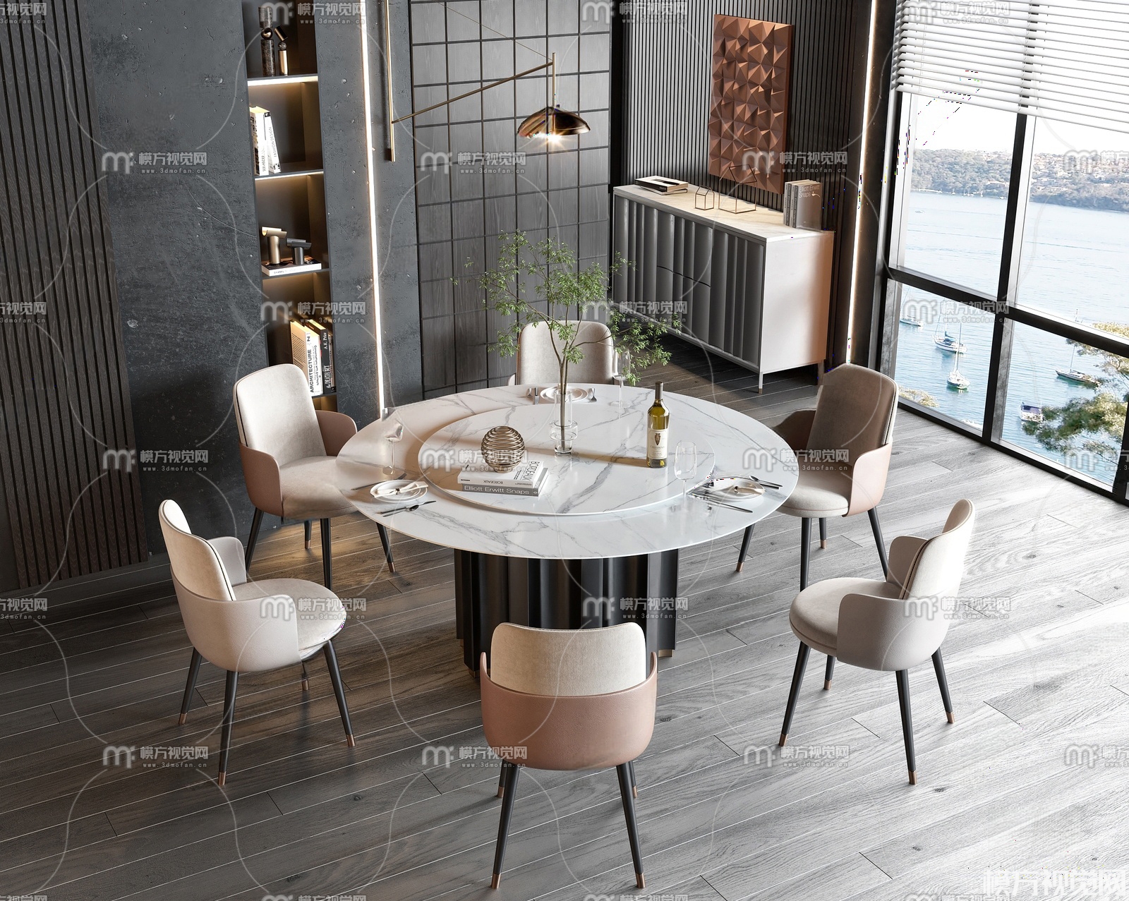 现代圆形大理石餐桌椅组合3D模型(ID:0033462)