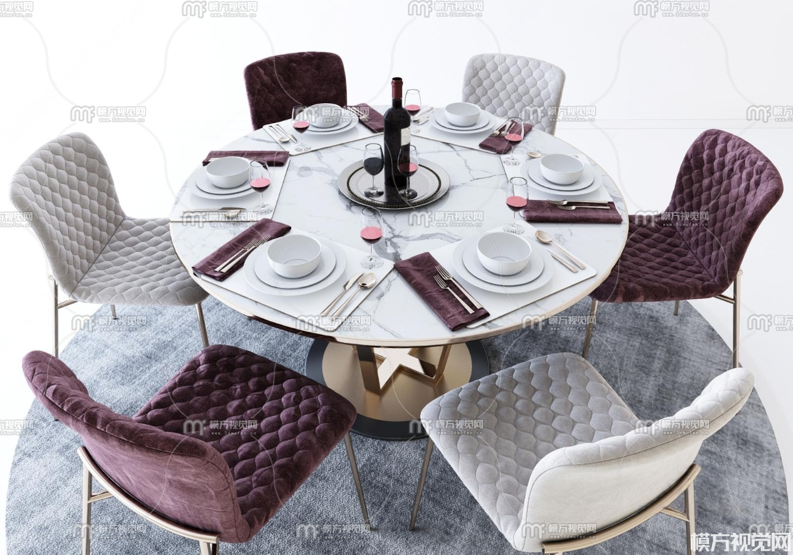 现代轻奢圆形餐桌椅组合3D模型(ID:0033467)