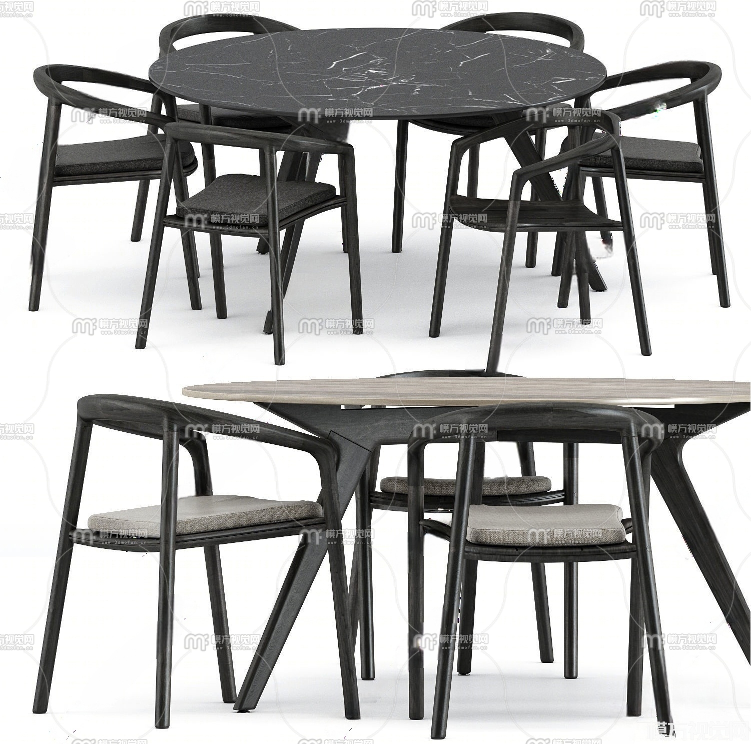 现代圆形餐桌椅组合3D模型(ID:0033479)
