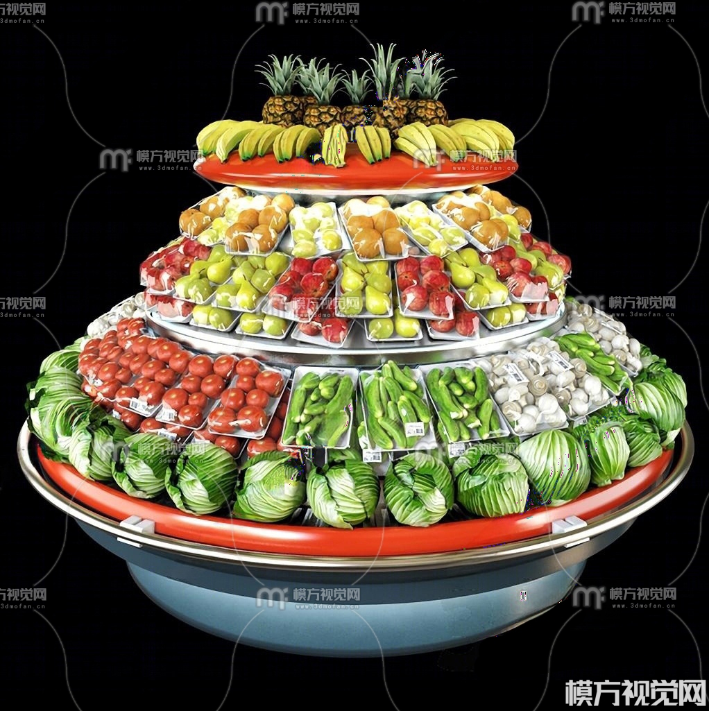 现代超市水果蔬菜货架堆3D模型(ID:0033654)