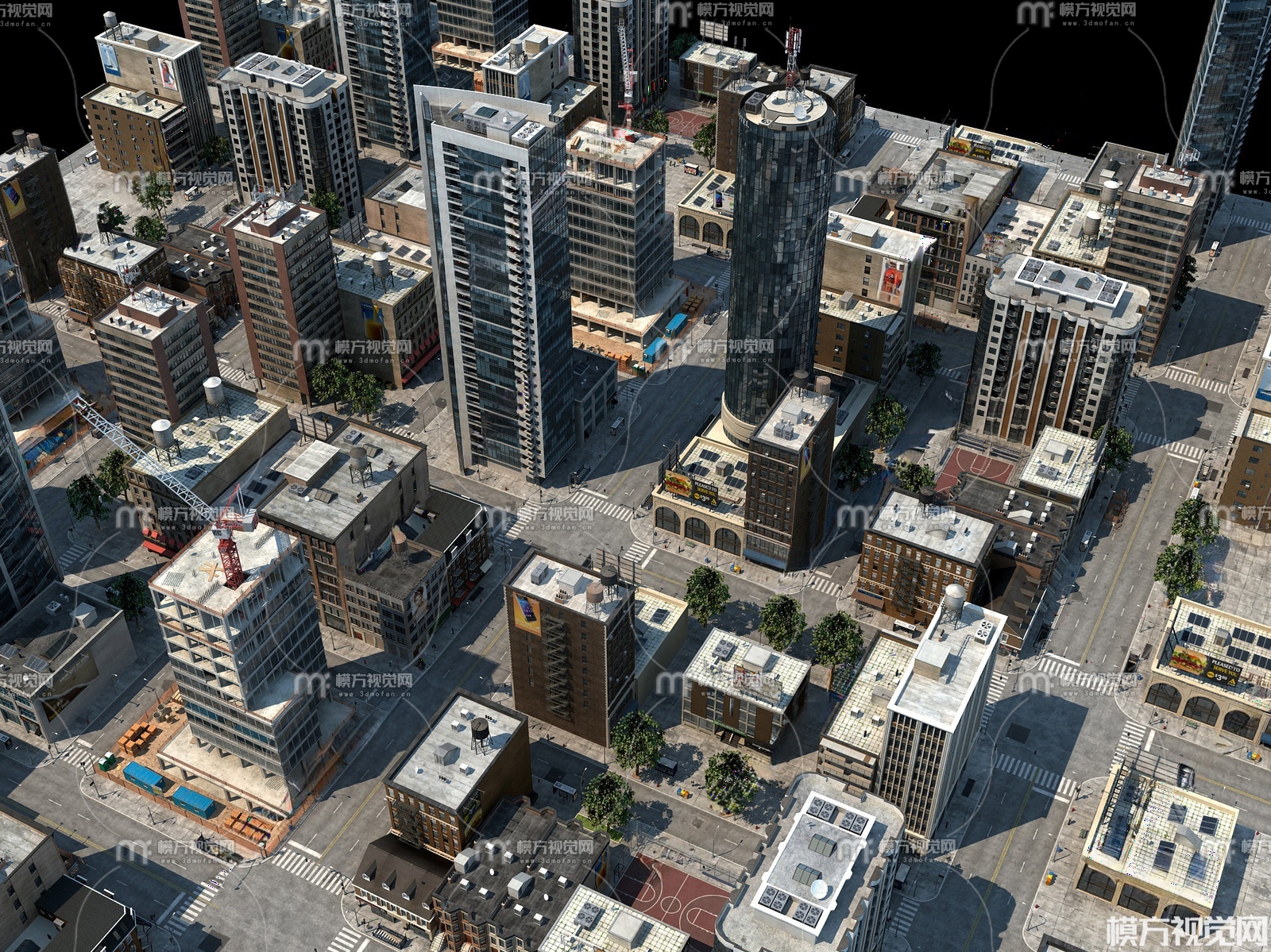 现代城市建筑楼3D模型(ID:0033672)