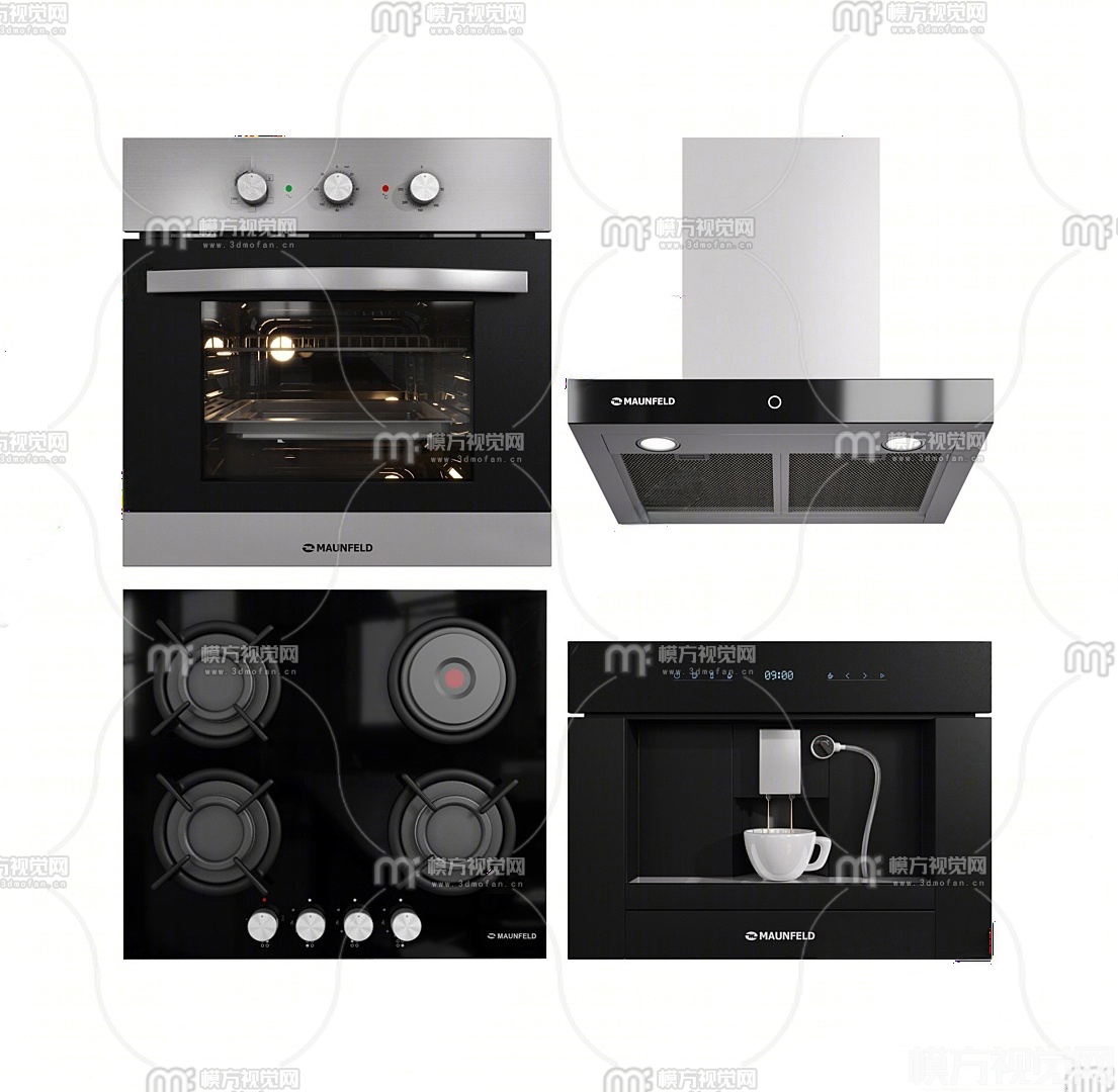 现代抽油烟机 燃气灶 烤箱3D模型(ID:0033703)