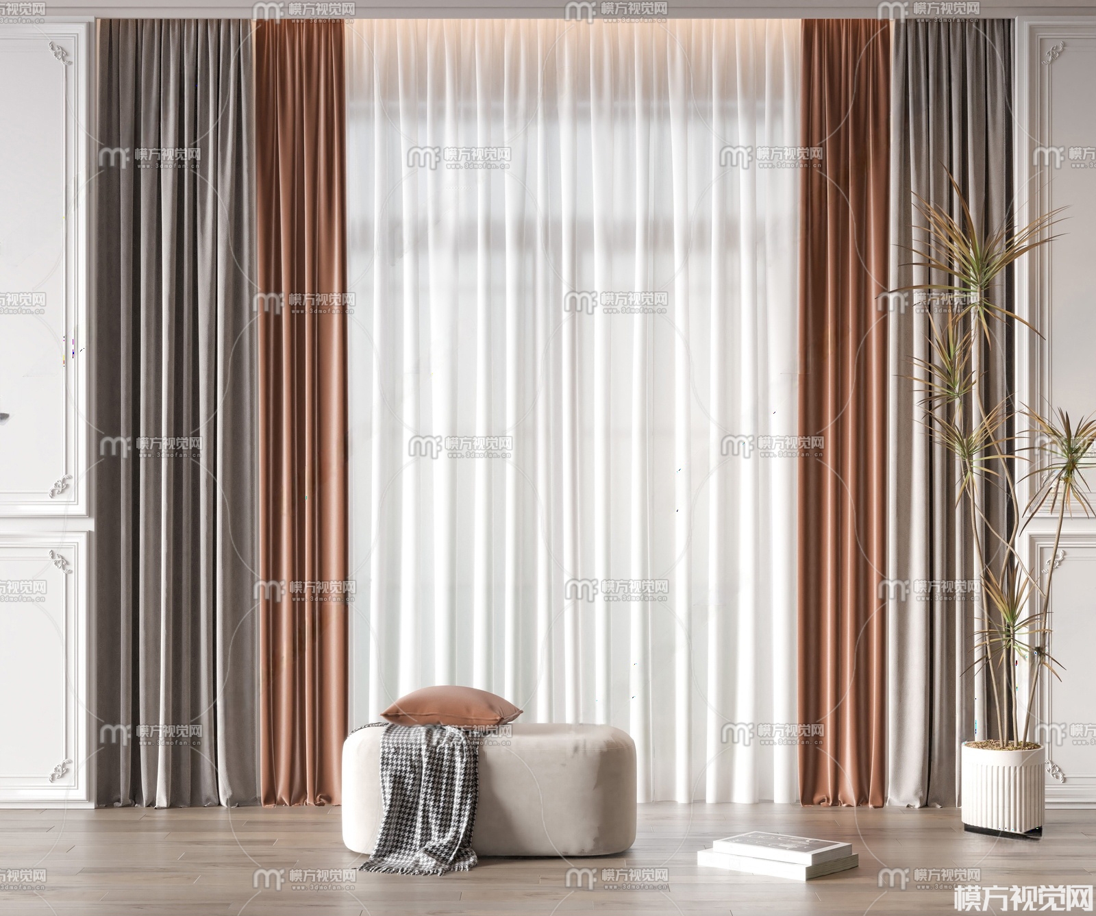 现代窗帘3D模型(ID:0033793)