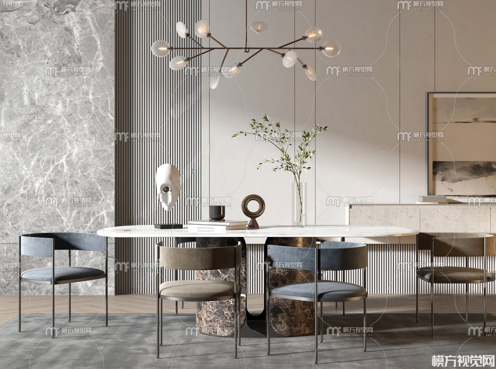 现代大理石餐桌椅3D模型(ID:0033856)