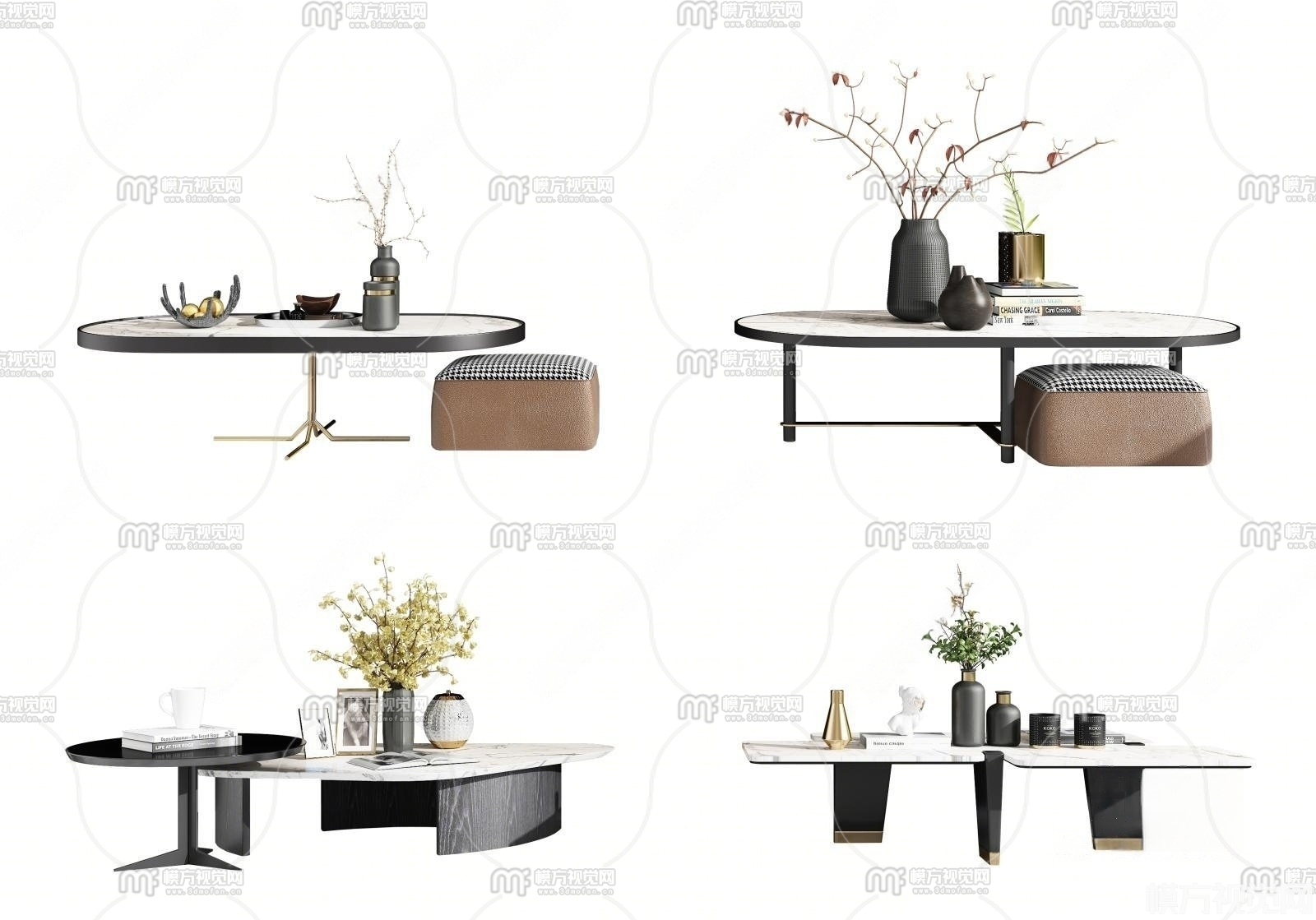 现代大理石茶几组合3D模型(ID:0033860)