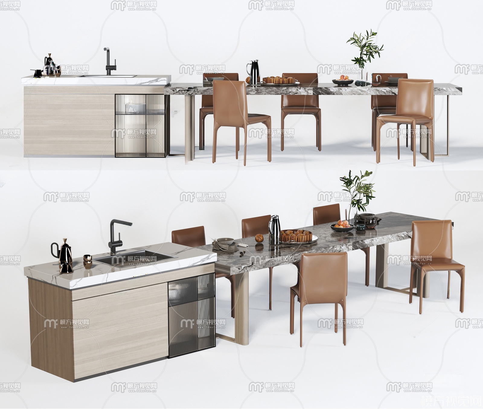 现代大理石中岛餐桌椅3D模型(ID:0033866)