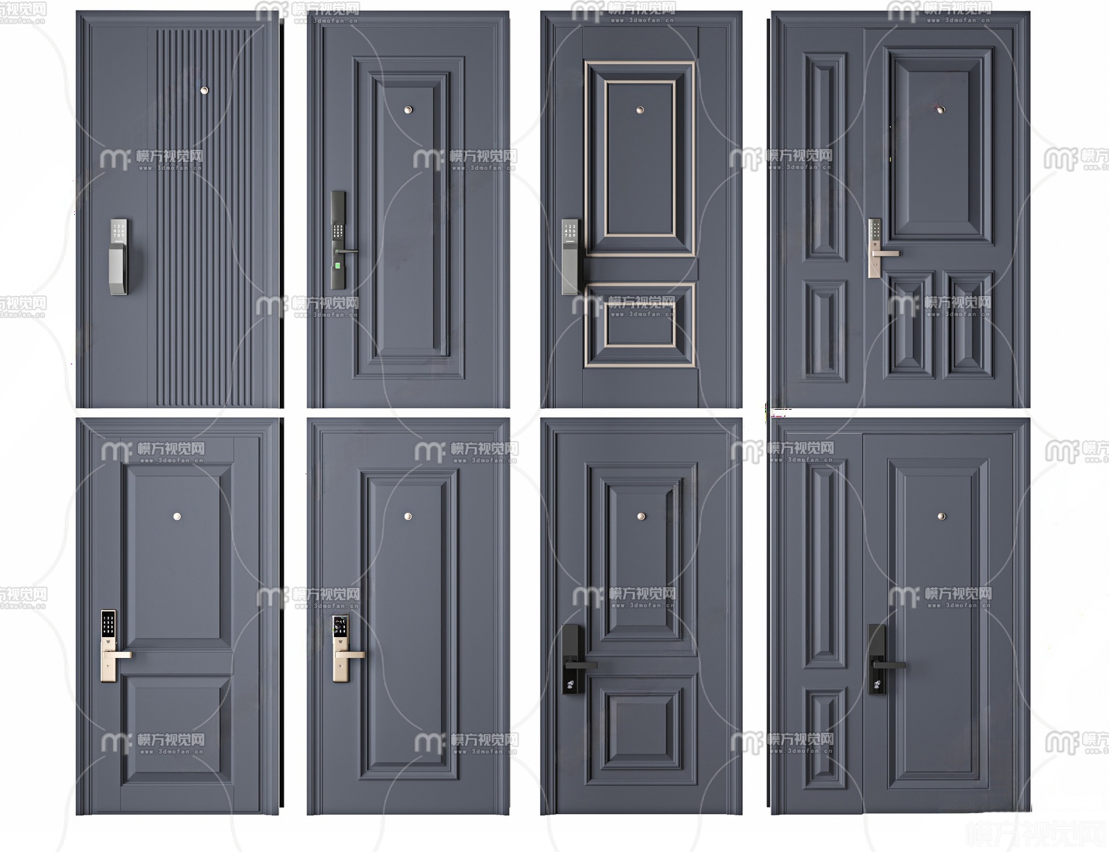 现代门 入户门组合3D模型(ID:0033893)