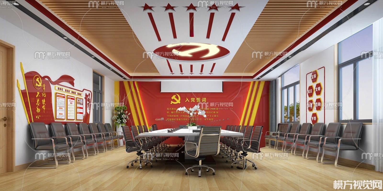 现代党建会议室3D模型(ID:0033980)